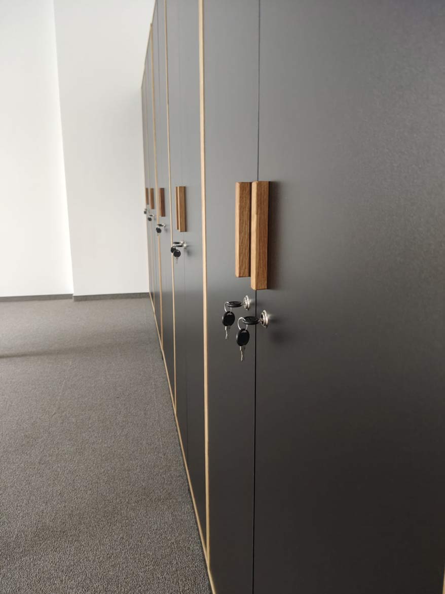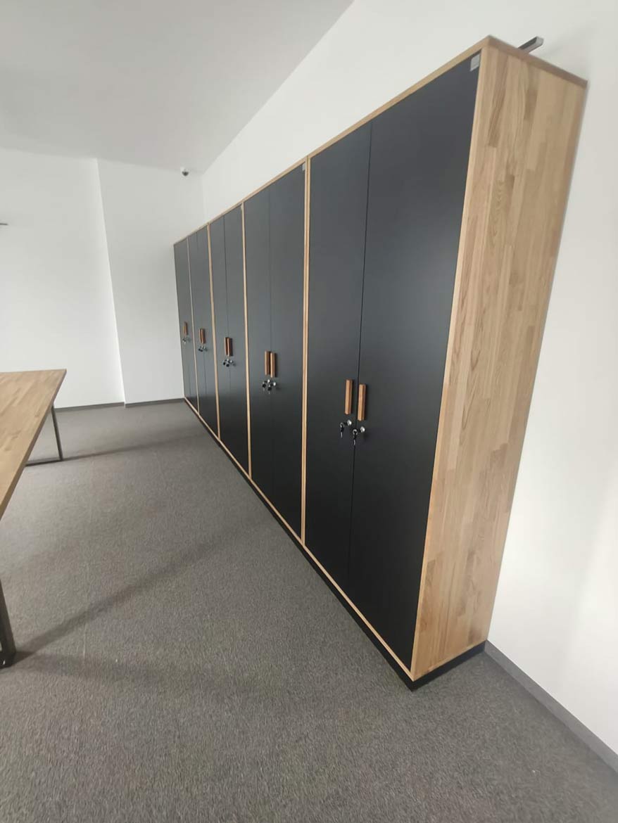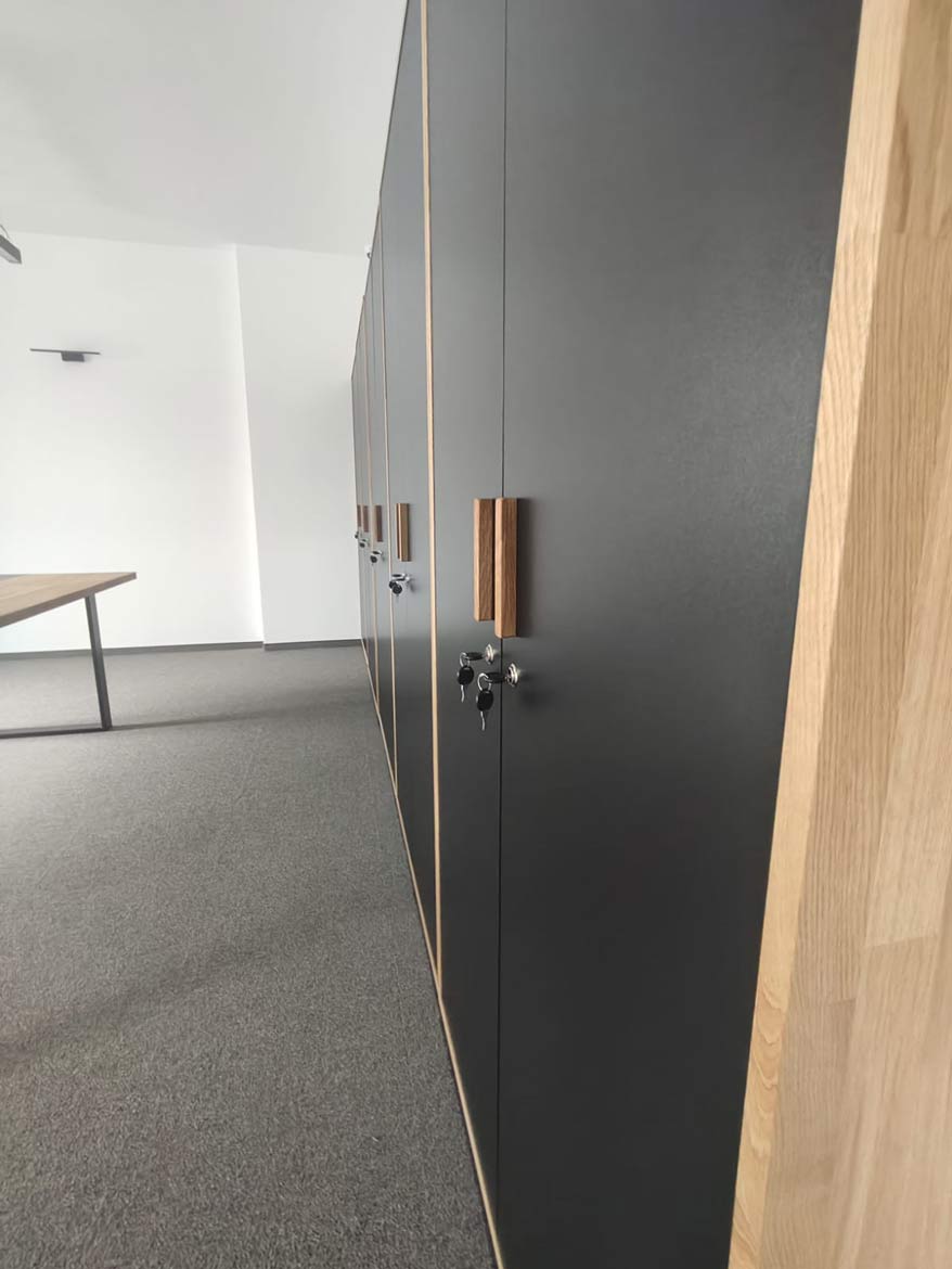 Closet housing allows you to safely store documents and keep the room tidy. The final result is an orderly, presentable space that looks good and supports the daily work of the team.
