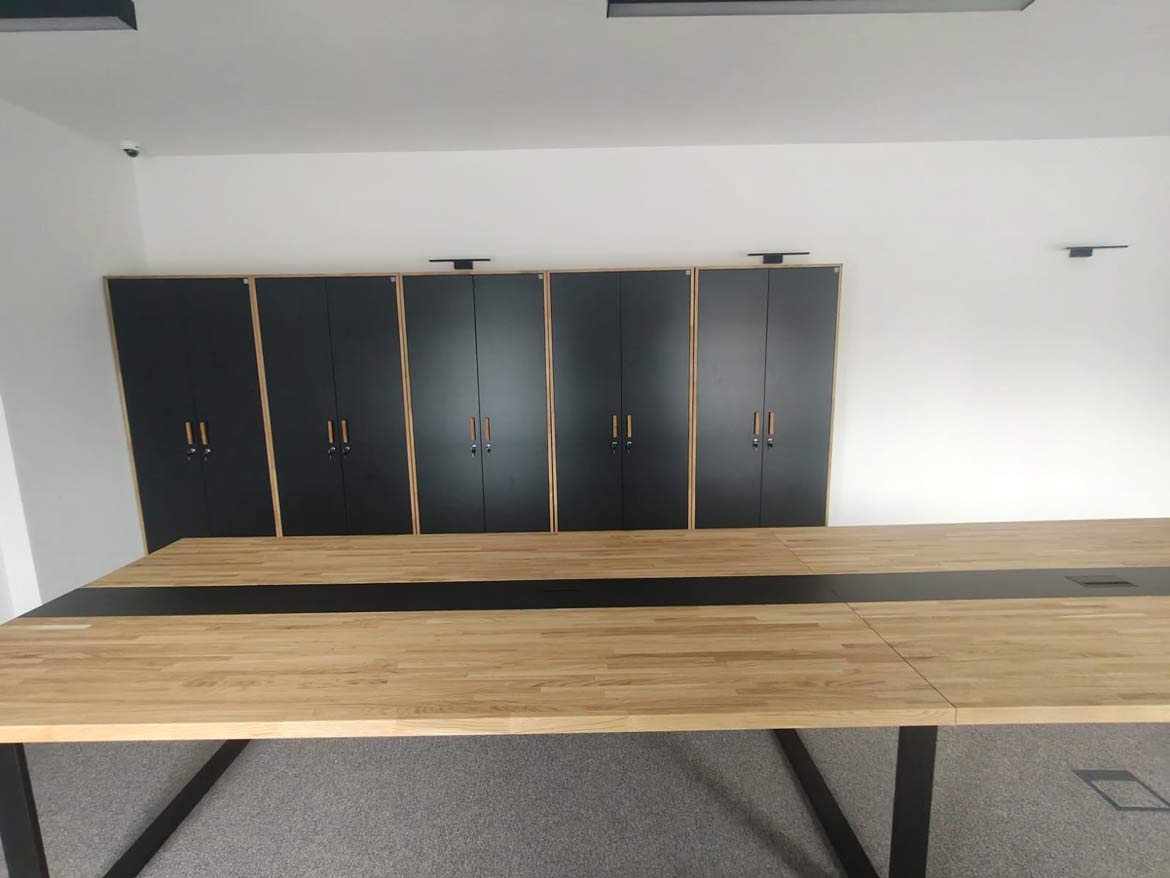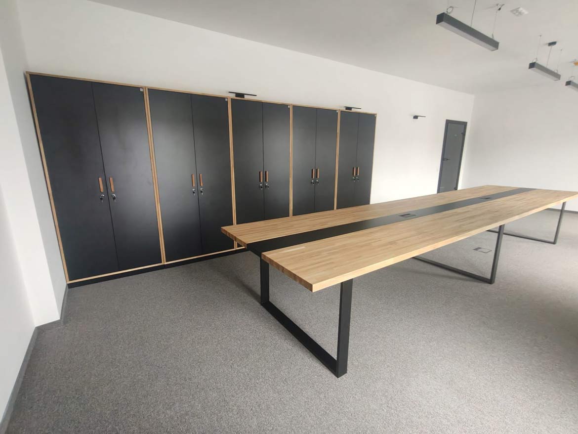 For Defero Sp. z o.o. in Sieradz, we have made a 5-meter conference table along with built-in lockable cabinets. It is a space prepared for larger meetings, deliberations and teamwork.