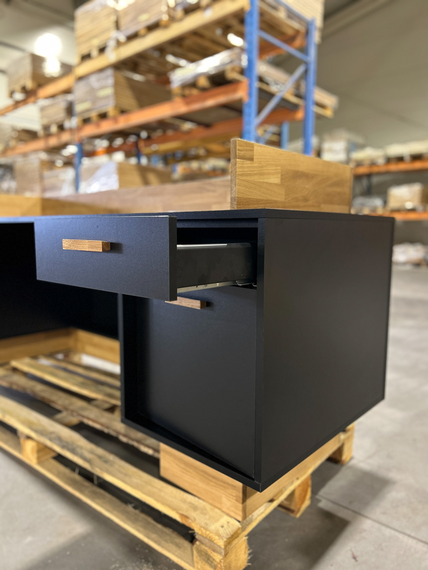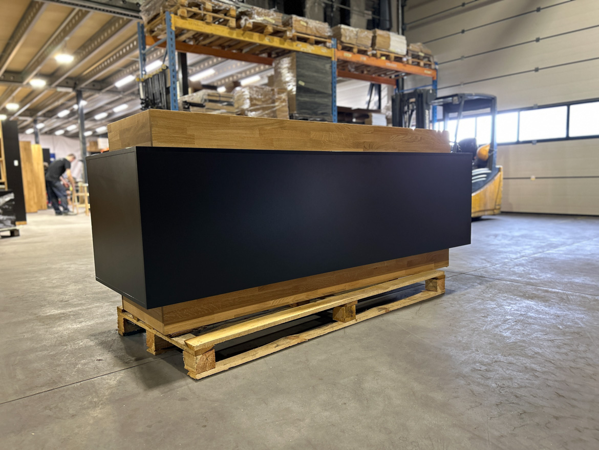 This is an ideal piece of furniture for an office, study or reception area, where both aesthetics and work comfort are important. The photos show the counter still at the stage of production, just before shipment to the customer. Soon we will show how it looks in the finished interior – the final effect promises to be really great.