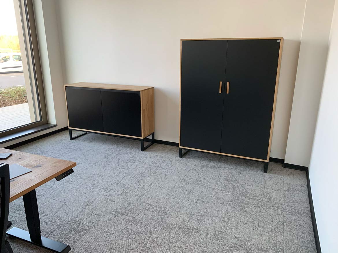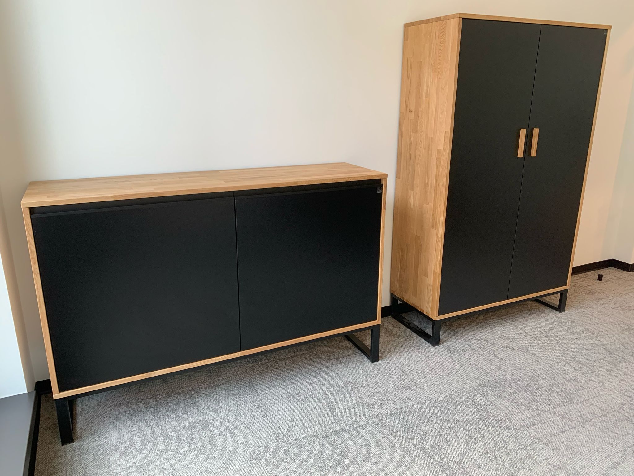 For our client from Cologne we have prepared an elegant set of office furniture consisting of a chest of drawers and a filing cabinet. The furniture was made from a combination of black fronts and natural oak, which gave it a timeless look and a solid finish.