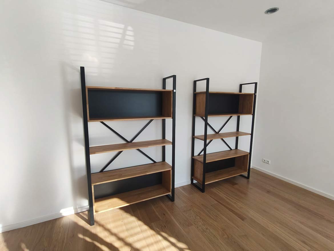 Metal and wood bookcase is a sturdy piece of furniture suitable for office, study or home. The metal construction ensures stability, while the wooden shelves give it an elegant and modern look.