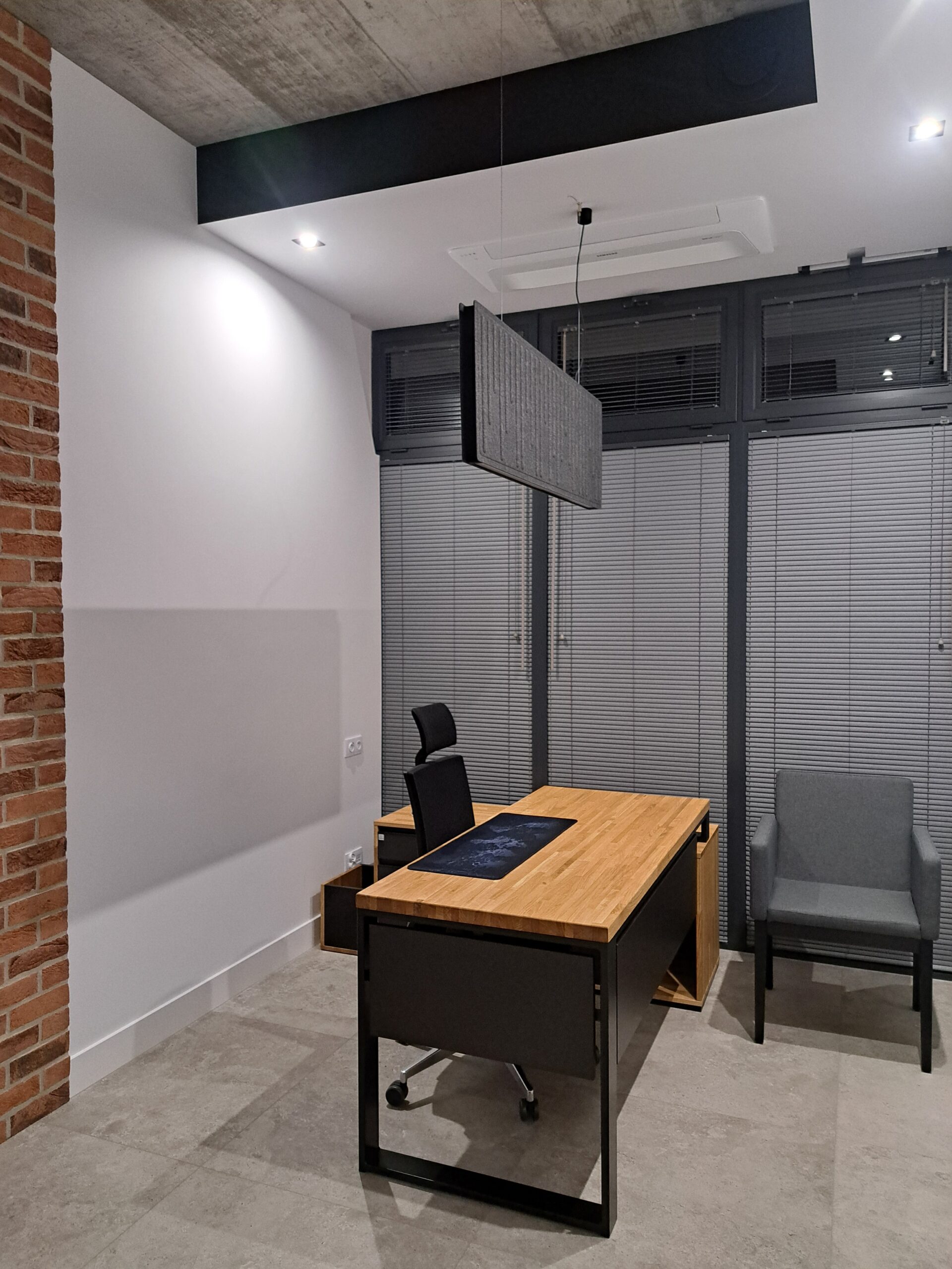 In this realization, we created a place where you immediately feel calm and order. The corner desk with an oak top and enlarged pedestal has become the focal point of the office – elegant, solid and comfortable for daily work. The oak finish warms up the space, and the dark elements of the furniture add to its distinctiveness. The whole is complemented by practical countertops, a basket and a clothes rack – all to keep the perfect order.