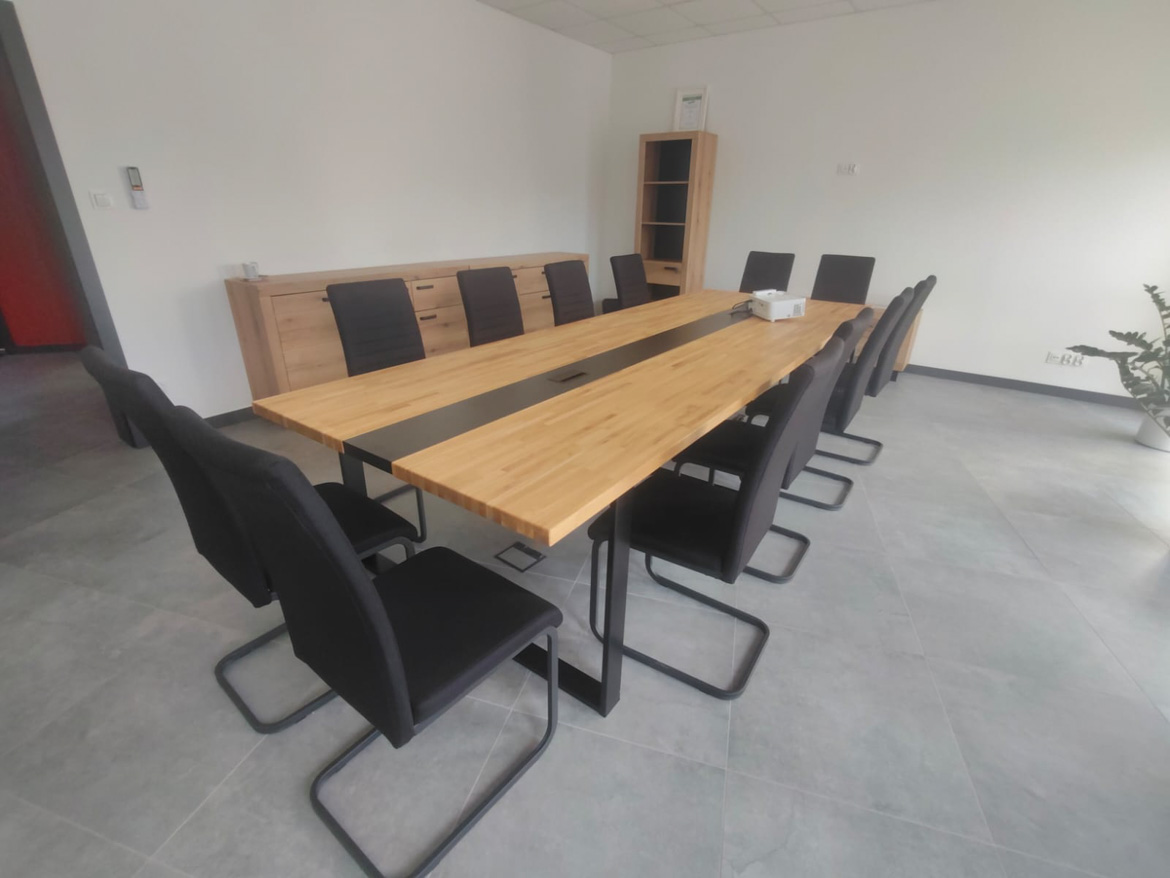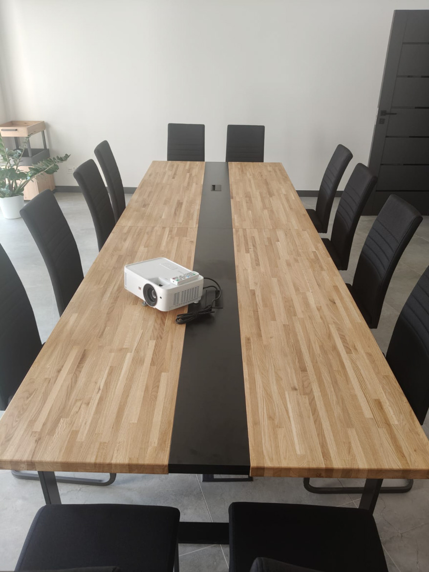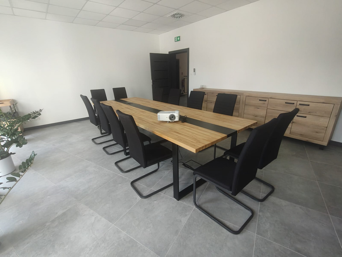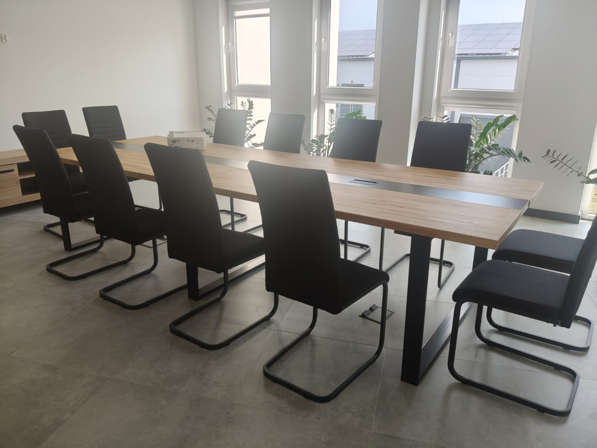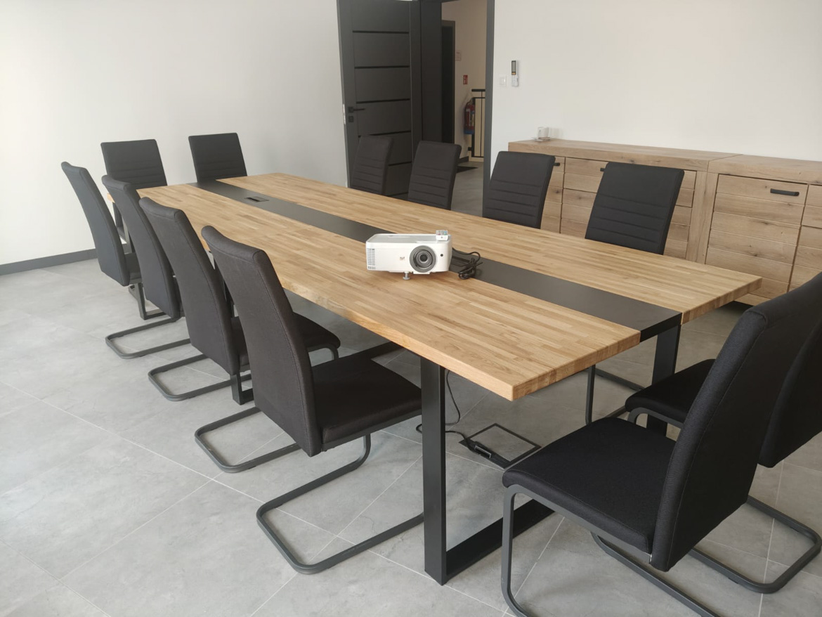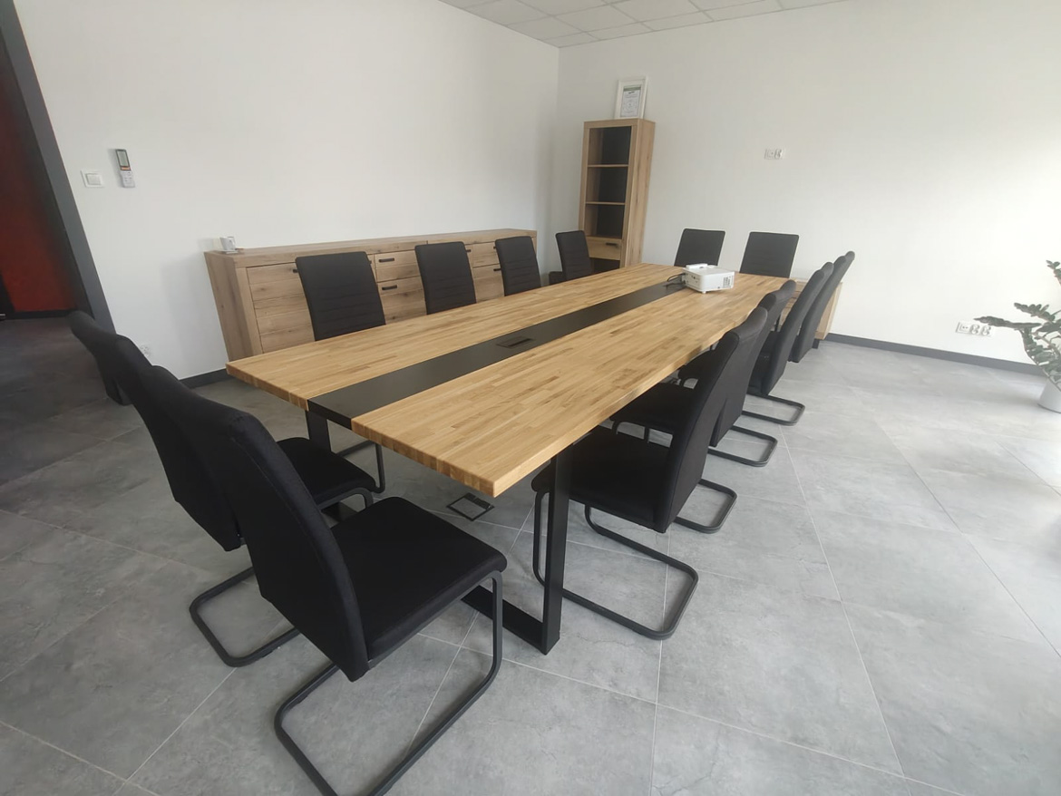 We made a large 340×120 cm conference table for 12 people for the HENZYM Production-Service-Trade Company in Gdynia. The project was designed to create a comfortable and orderly space for team meetings and business talks.