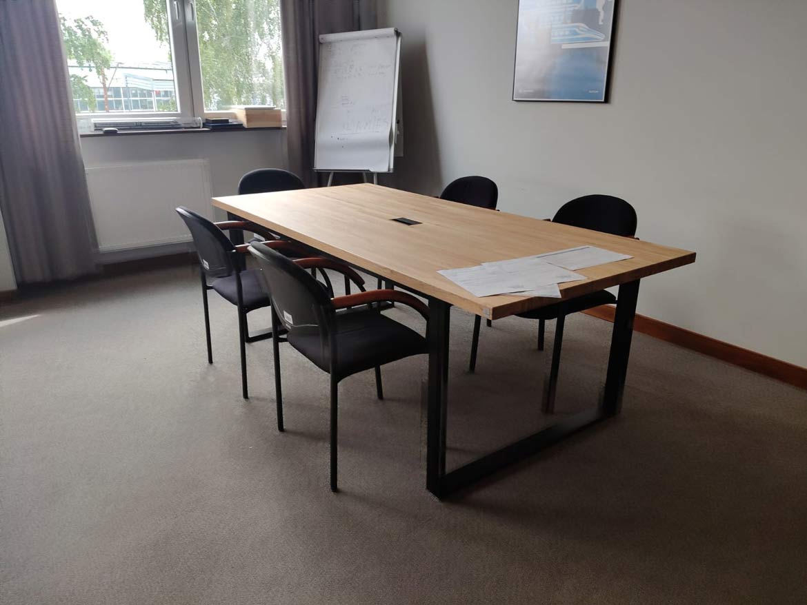 We prepared a simple but very elegant conference table for WARS S.A. from Warsaw. It has a solid wooden top and black metal legs, which add to its modern look.