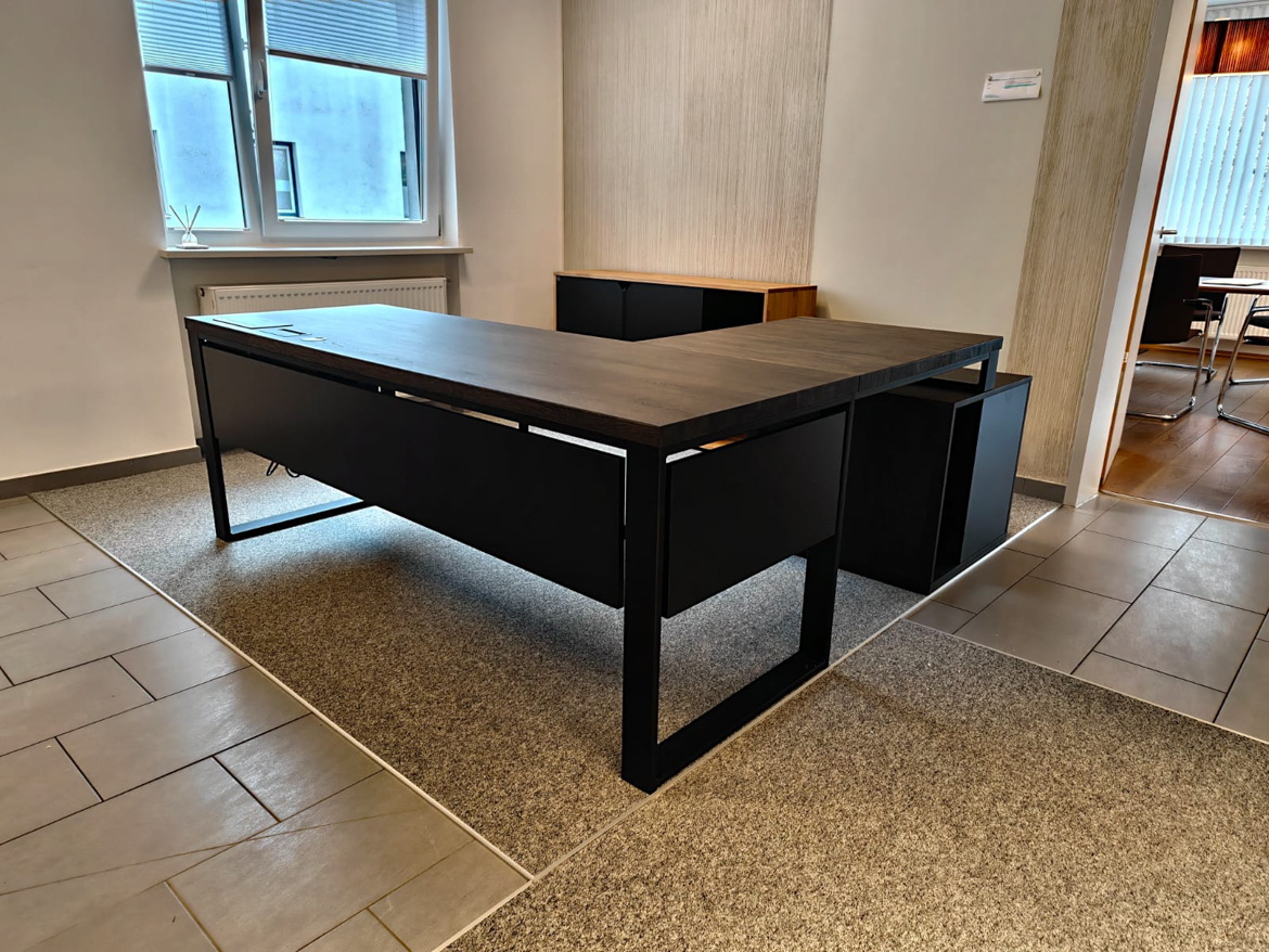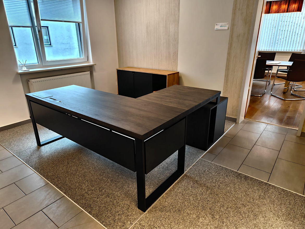 For the accounting office Steuerkanzlei Hallermeier in Aldorf, we prepared a corner workstation tailored to daily work with documents and clients. In this type of business, order, convenience and good organization of space are important, so the whole thing was designed to facilitate daily duties.