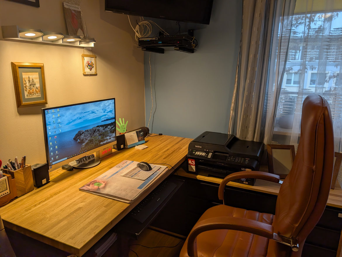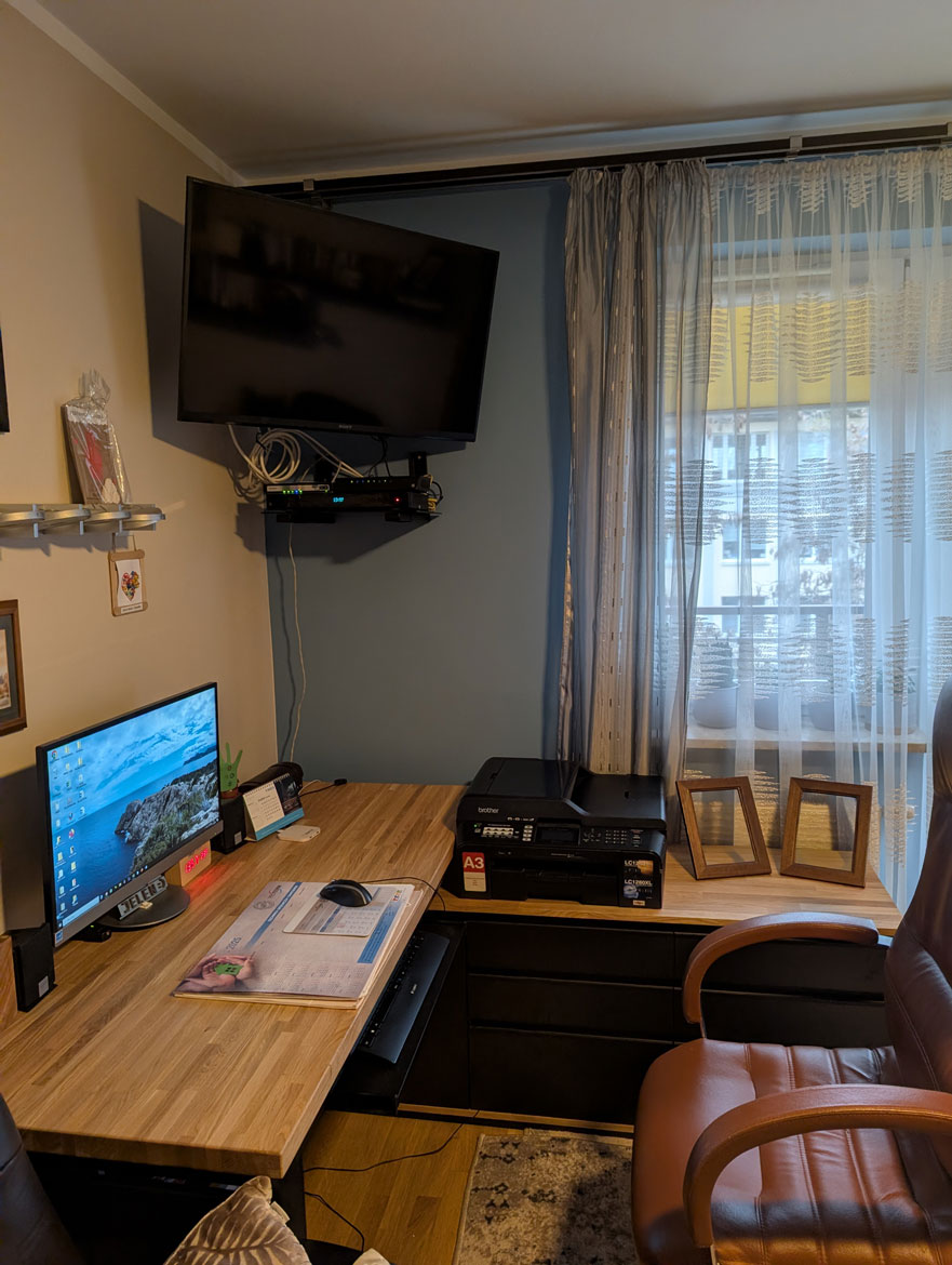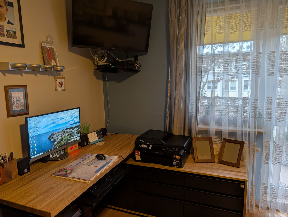 The corner desk with an enlarged pedestal was created for the home office of Mr. Eugene from the engineering industry. The large surface area of the tabletop gives you the freedom to work with documentation and equipment, and the roomy pedestal allows you to stay organized throughout the day. It’s a realization that organizes the space and makes daily work simply more convenient.