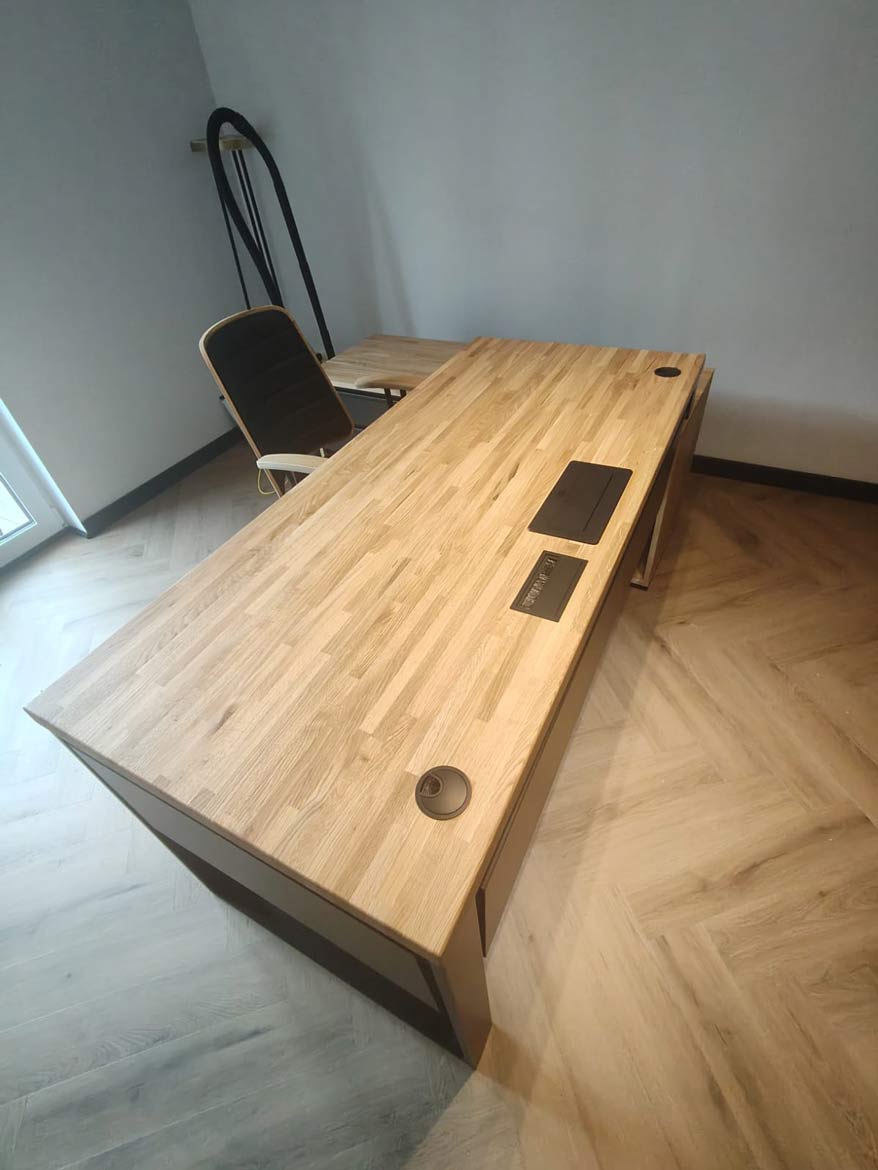 For Voltex in Swidnica, we prepared a corner desk with a large pedestal equipped with capacious drawers. The set is complemented by a comfortable, ergonomic chair, which together create a practical and comfortable place for daily work. A simple solution that works well in the office.