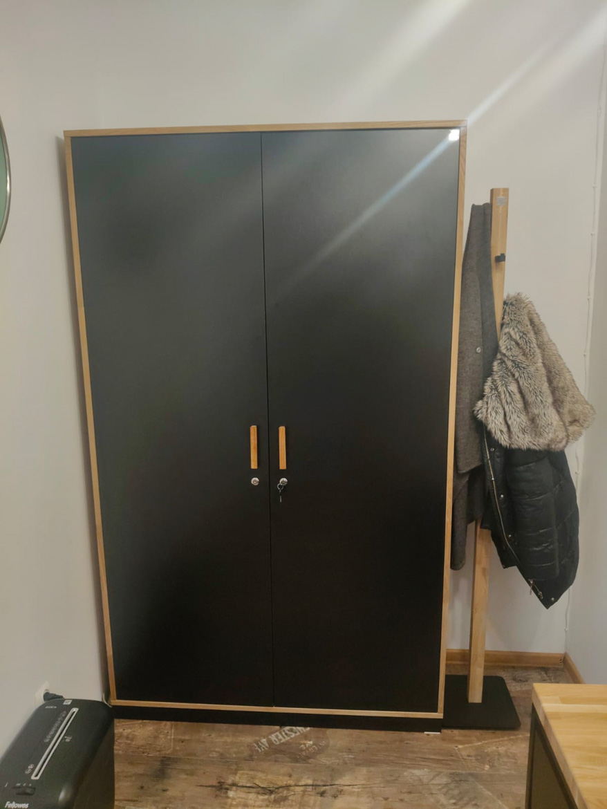 For the Social Welfare Center in Górzyca, we made a corner desk with a pedestal and a set of office cabinets. The corner layout provides a comfortable space for daily work with documents and residents, while the capacious cabinets help to maintain order and safely store files.