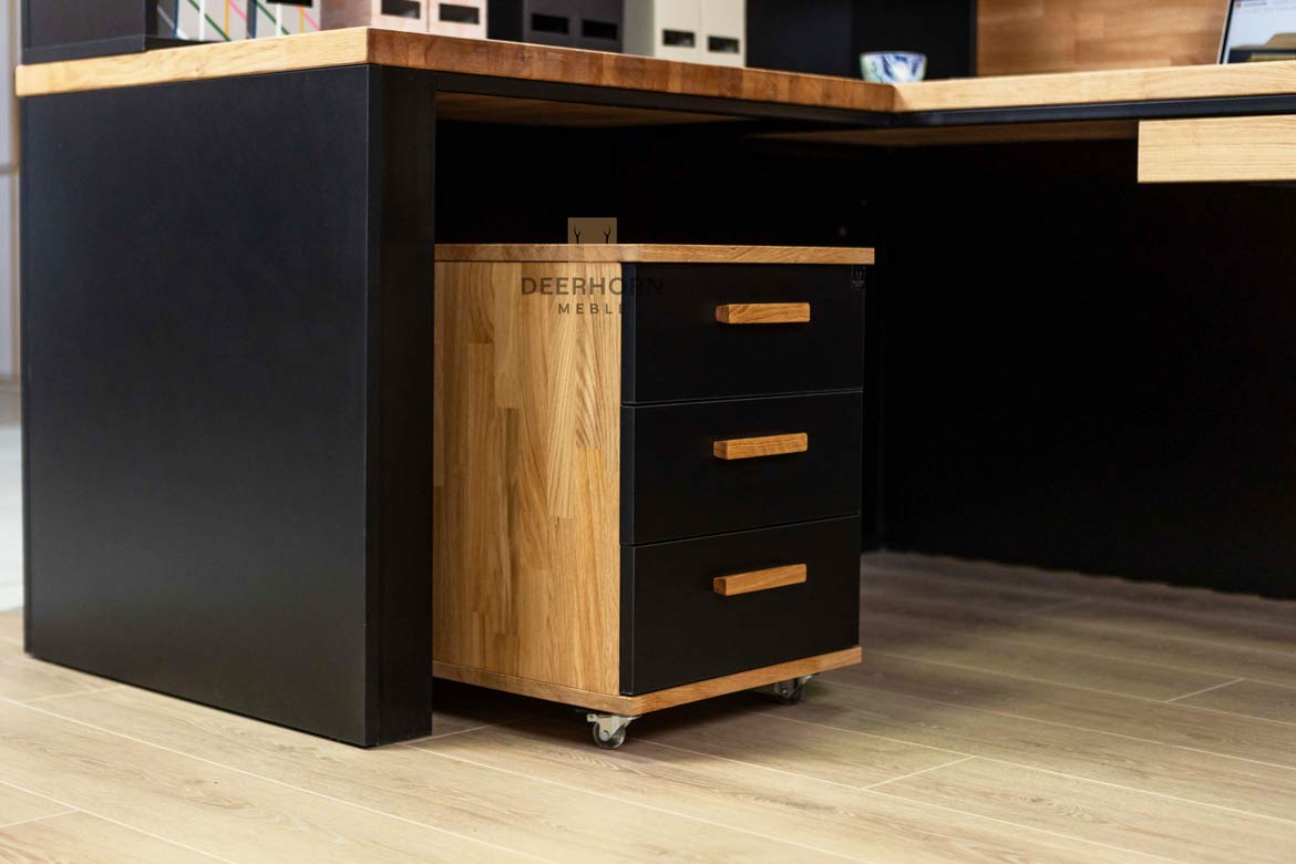 - Pedestal with drawers – facilitates the organization of daily work. It allows you to store documents, accessories and other necessary items that should be at hand, and at the same time invisible to the customer. In some models it is an integral part of the counter design,