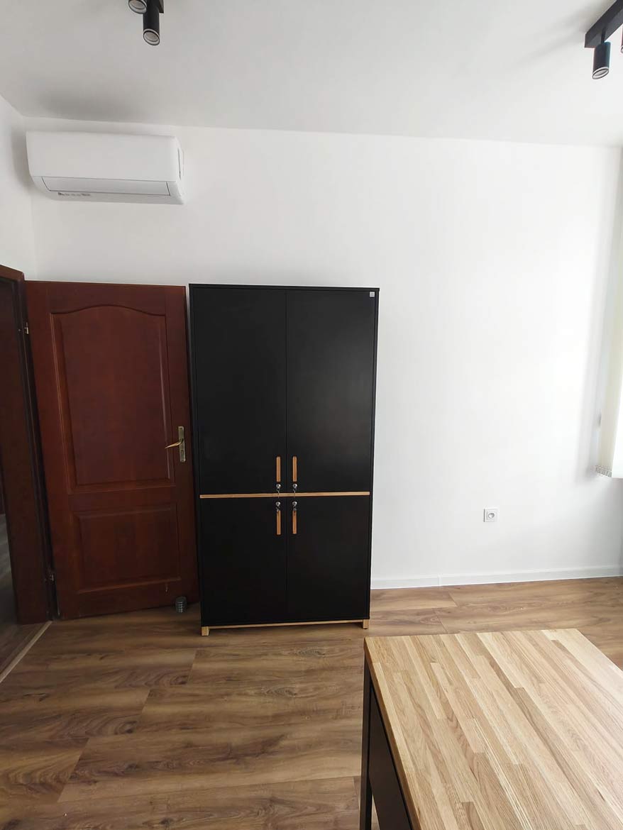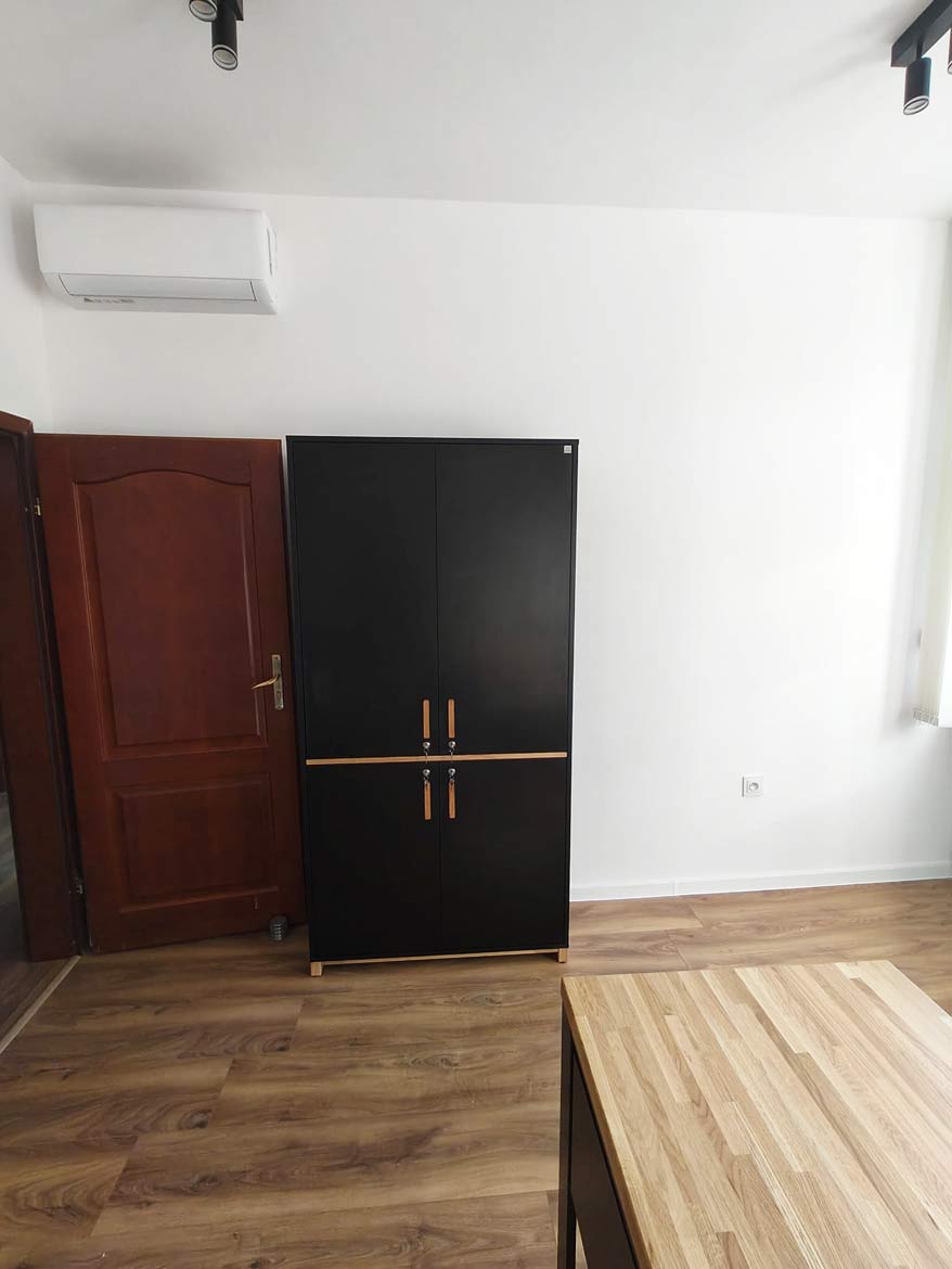 For a construction company from Warsaw, we made a capacious office cabinet in black with oak accents. It’s a sturdy and practical piece of furniture, ideal for everyday work – it helps organize documents, store equipment and keep the office tidy.