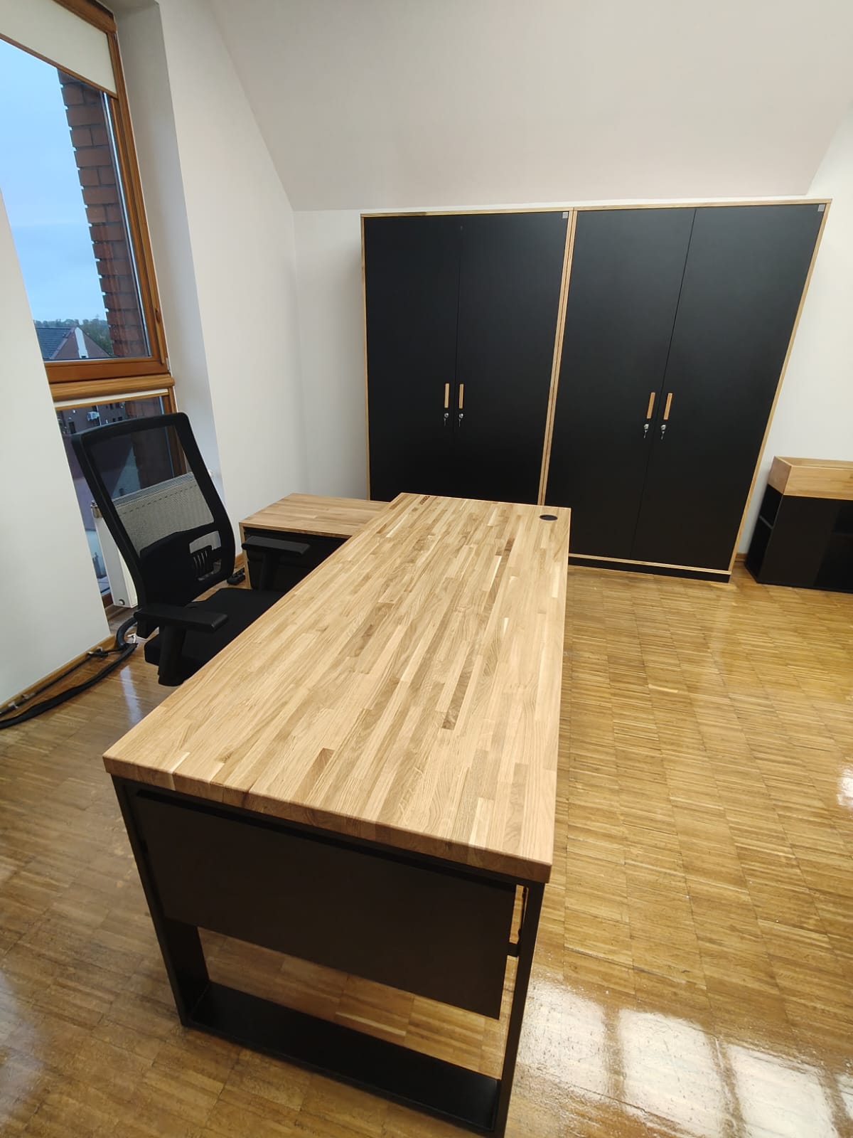 Courts and law firms very often choose premium furniture from Deerhorn. We already have thousands of realizations from this industry. We delivered tables, desks, cabinets and dressers made of oak wood combined with metal to a court in Szamotuly. The realization included delivery with bringing and setting up the furniture. Particularly noteworthy is the desk on X-shaped legs. For me it is an absolute hit. It makes a great impression and makes the interior of the office unique.