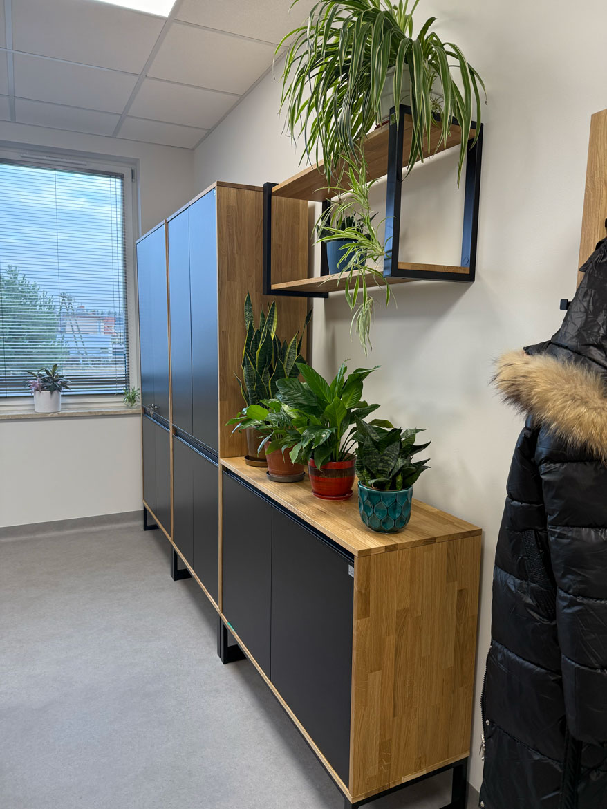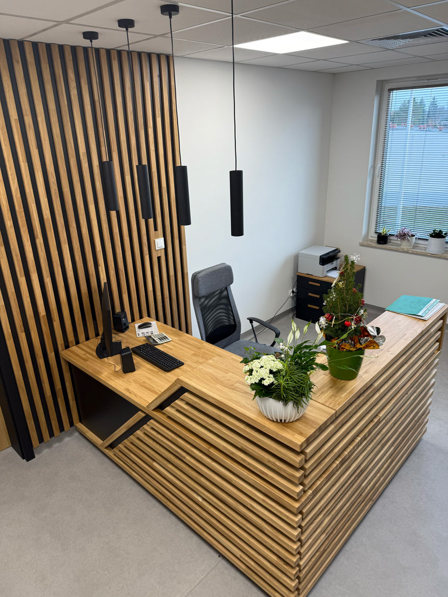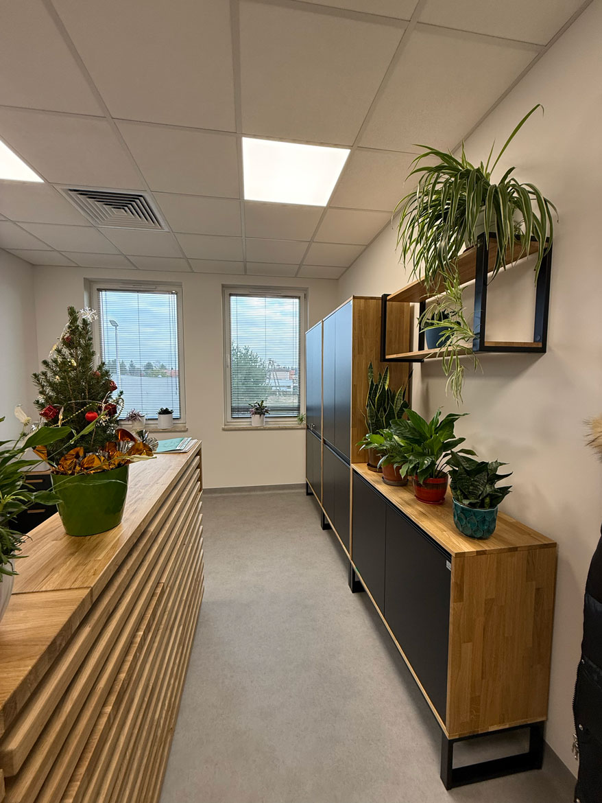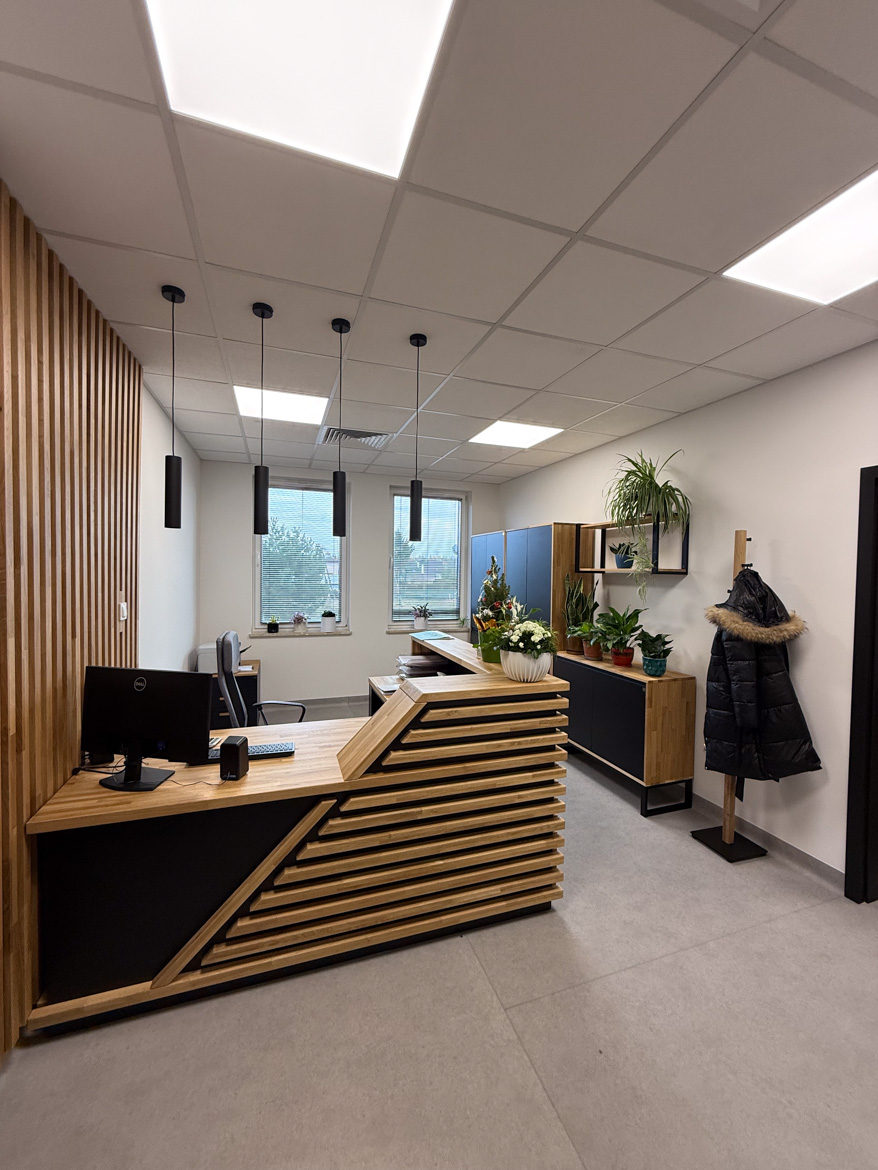 We designed and furnished the entire reception area for the Communal Management Facility at Przeworsk Municipality. The idea was to create a place where service to residents runs smoothly, and the space from the entrance is clear and orderly.