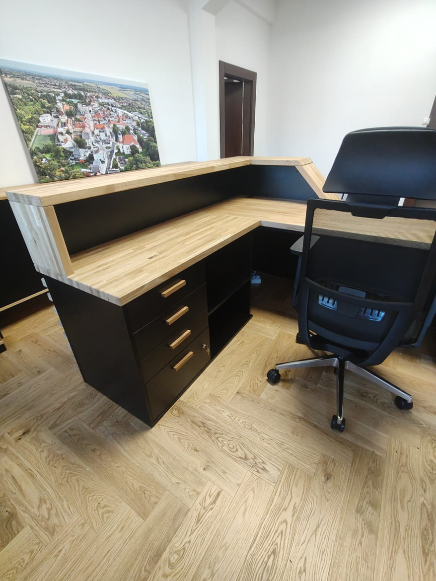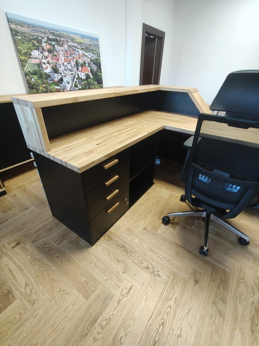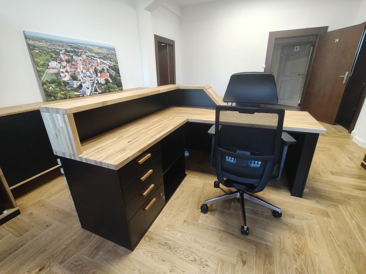 The reception counter was made for the Municipal Office of the City and Municipality of Syców with a view to the daily service of residents. The built-in pedestal gives a convenient place for documents and necessary accessories, so that the desk remains tidy throughout the day. It’s a solution that organizes the space and facilitates efficient work during the first contact with visitors.