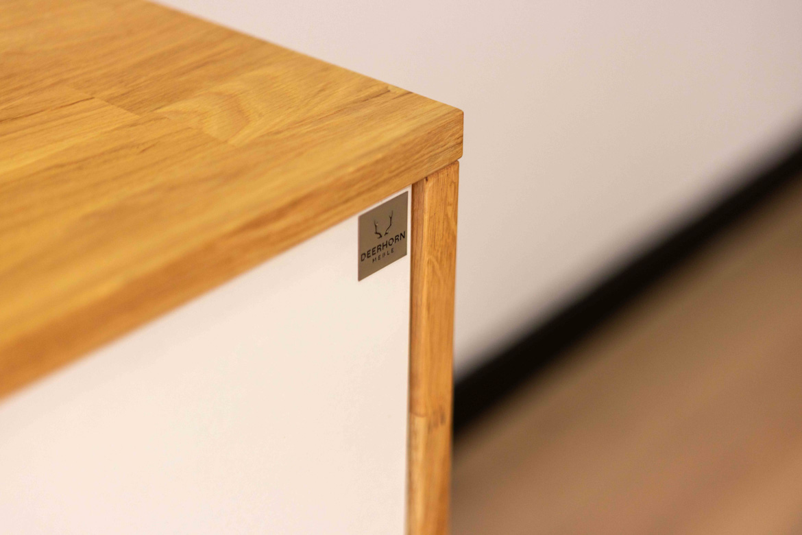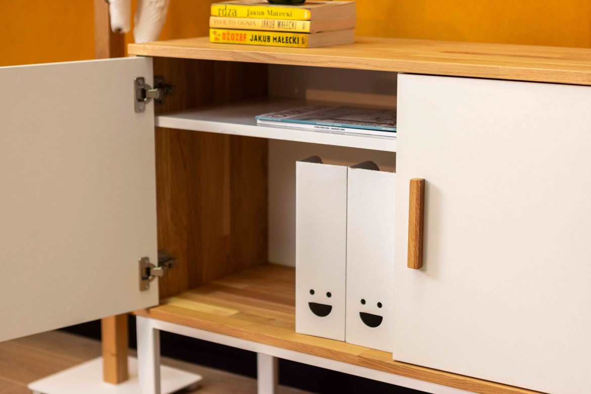 The white Scandinavian chest of drawers has capacious shelves where you can store books, binders, folders or notes. Our white chest of drawers features an oak body combined with the color white to create a remarkable style and designer look.