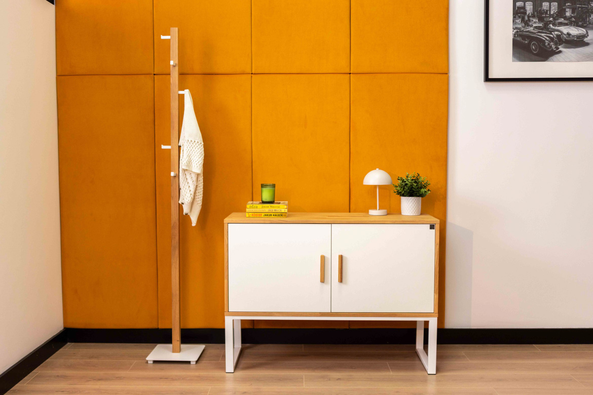 Our collection of Scandinavian and industrial premium furniture could not miss an elegant locking chest of drawers in natural wood and white.