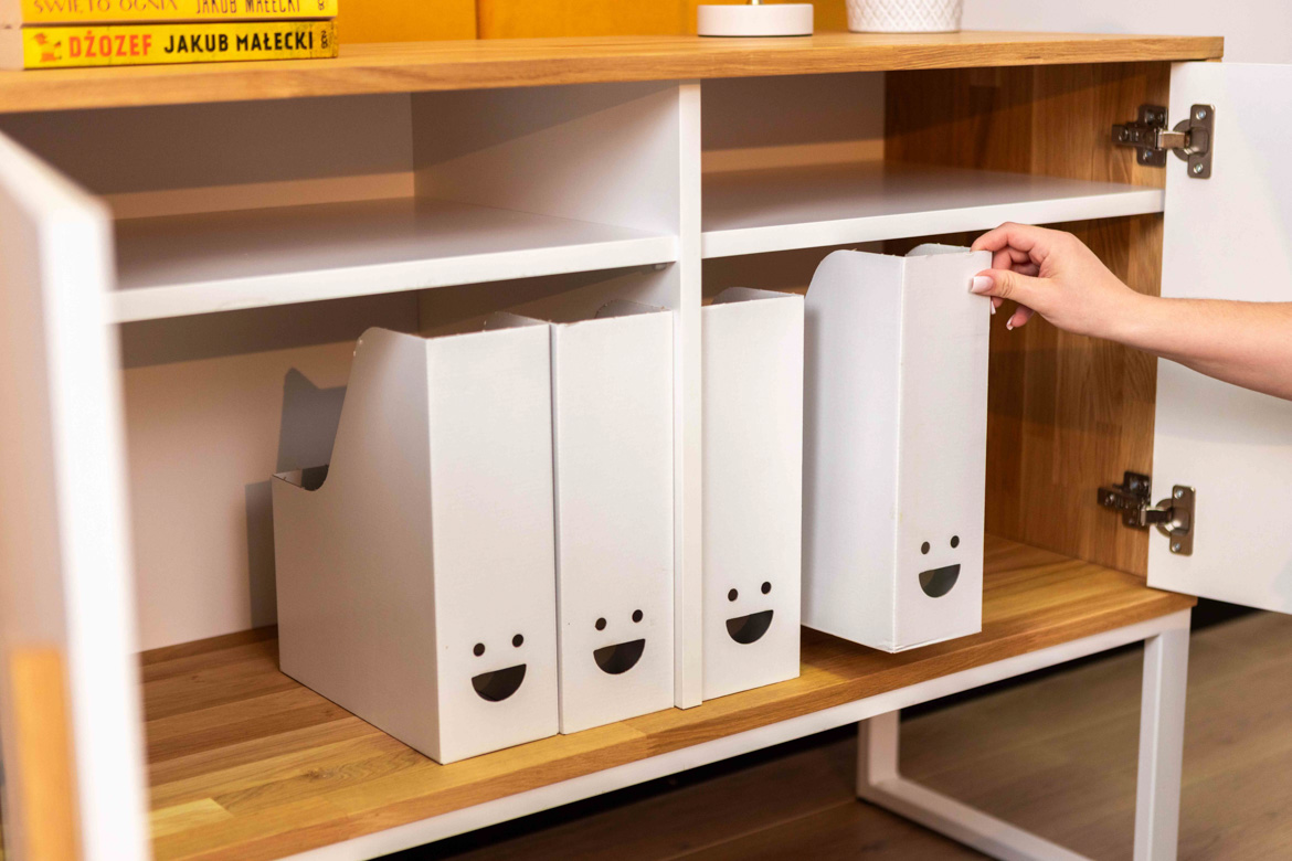 Scandinavian white chest of drawers for office or study – ideal for binders and documents