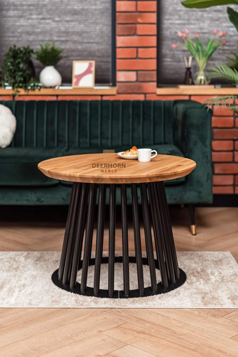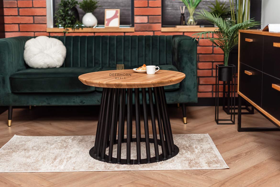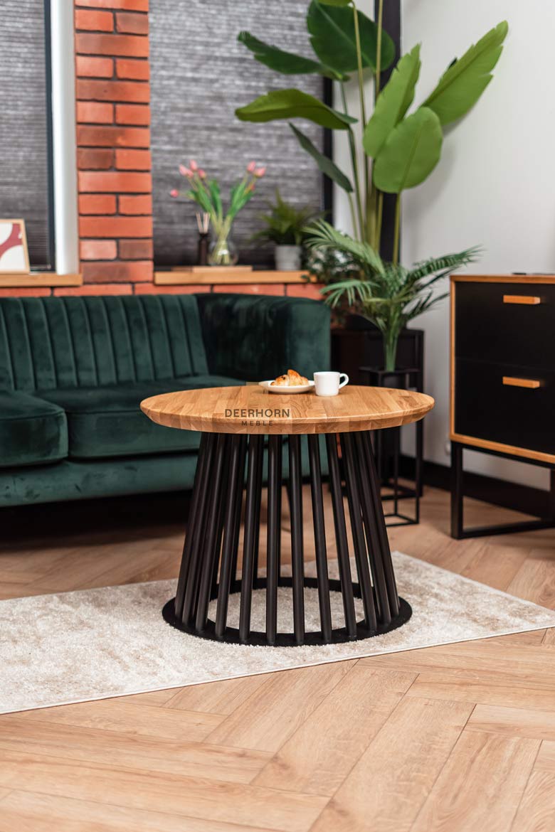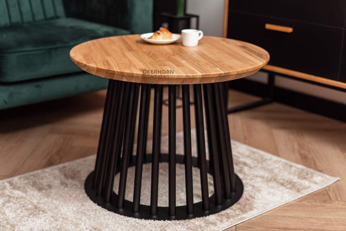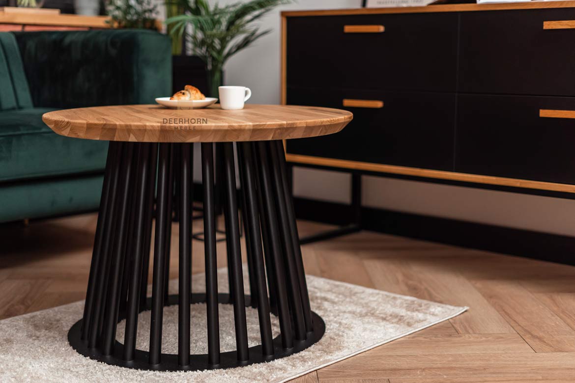 A modern coffee table that impresses with its minimalist design and harmony of materials. Smooth top made of oak in a natural shade blends perfectly with the black openwork base made of metal, creating an elegant and stylish combination.