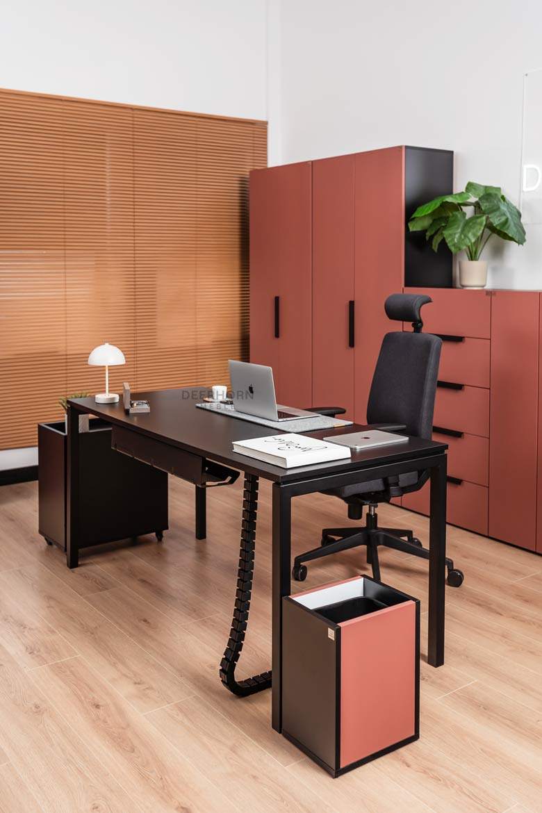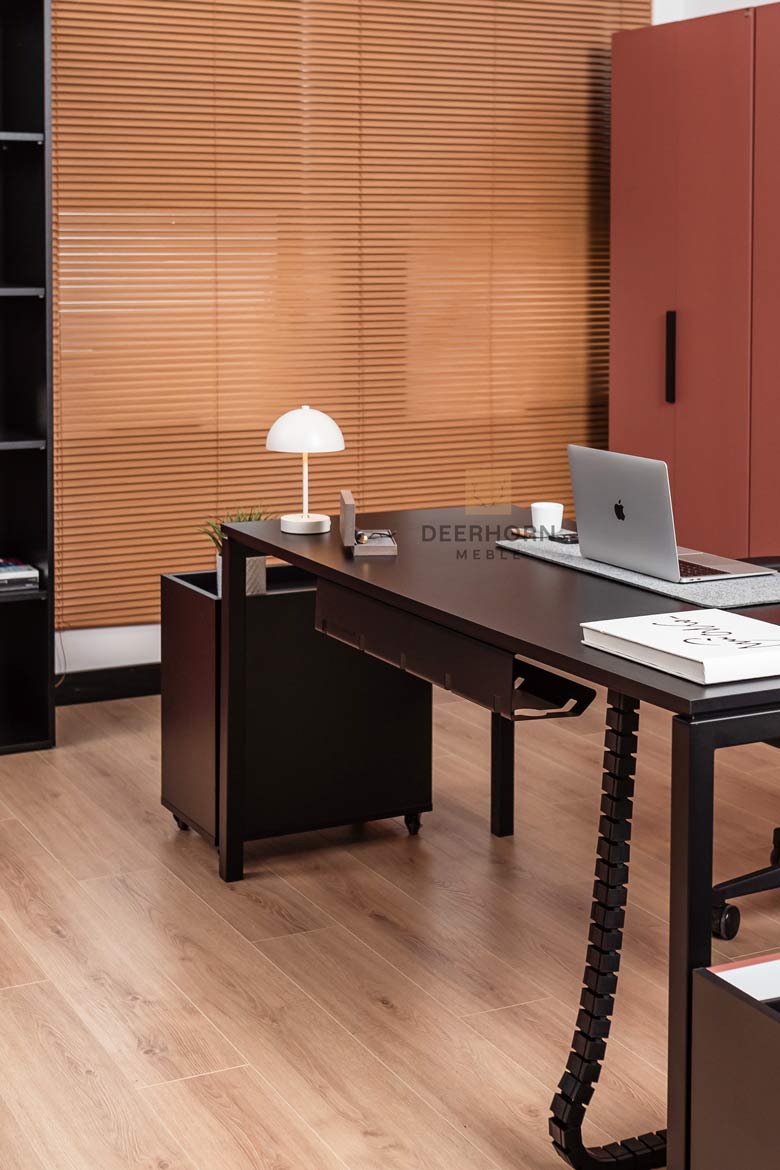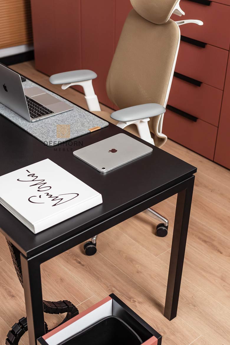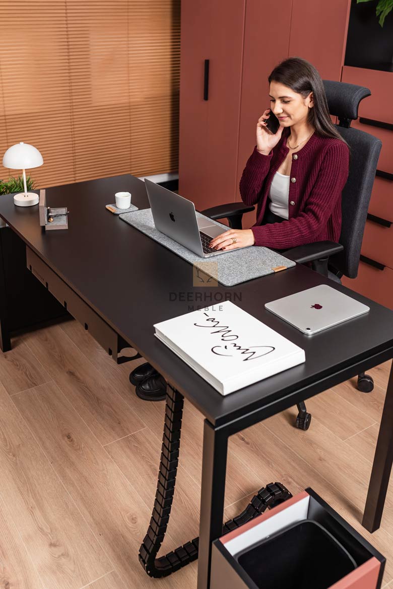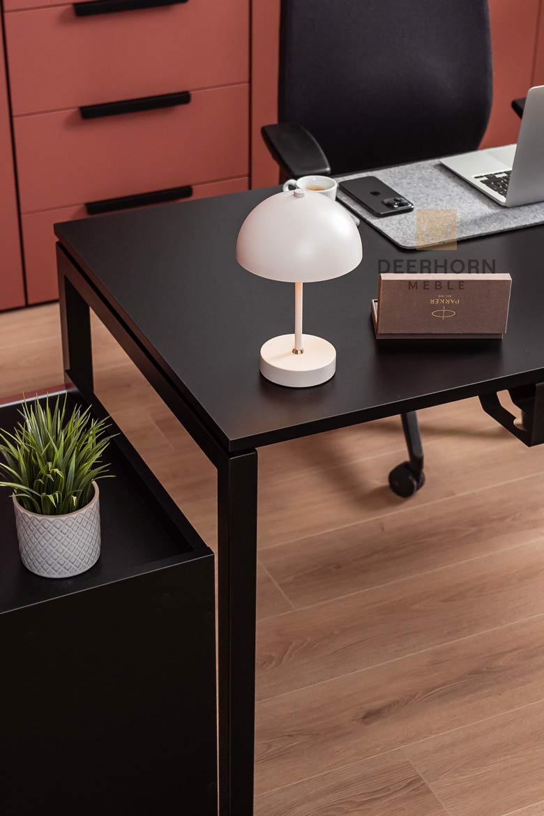 The minimalist form makes the desk fit well in various interiors – from open spaces to small offices. It can serve as a single desk or as part of a larger layout.