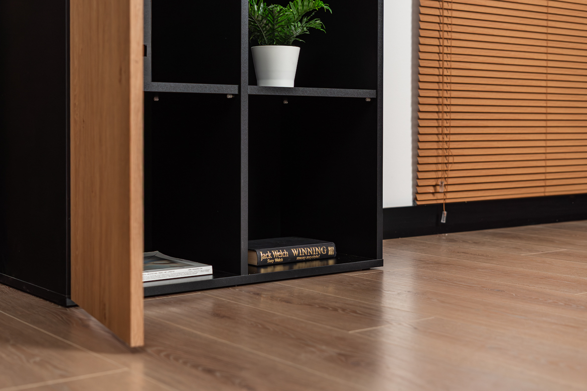 The bookcase will prove useful in office archives, administrative departments, secretariats and offices where good organization of documents is important. The wide form provides a large capacity, and the functional arrangement of shelves facilitates the segregation of folders and company documents, supporting the ergonomics of daily work.
