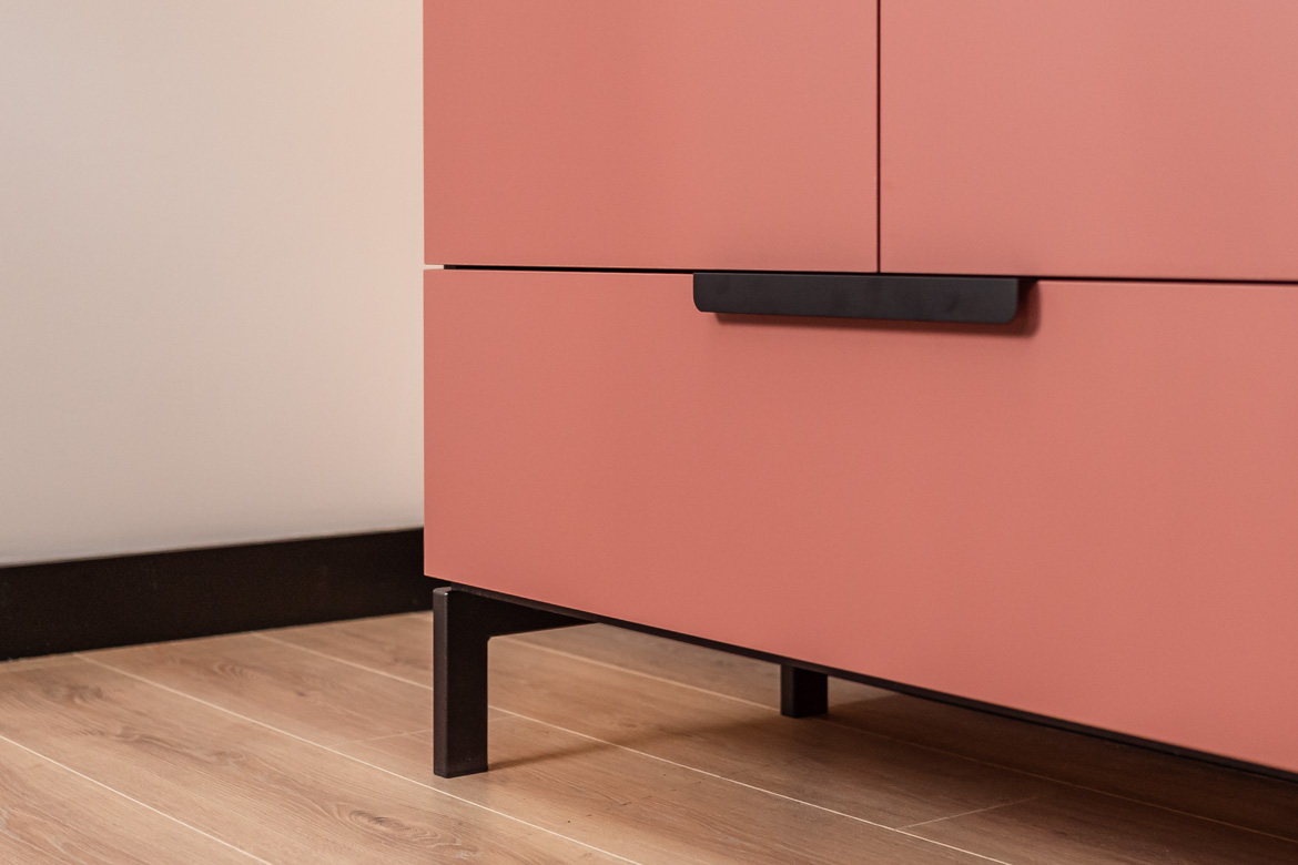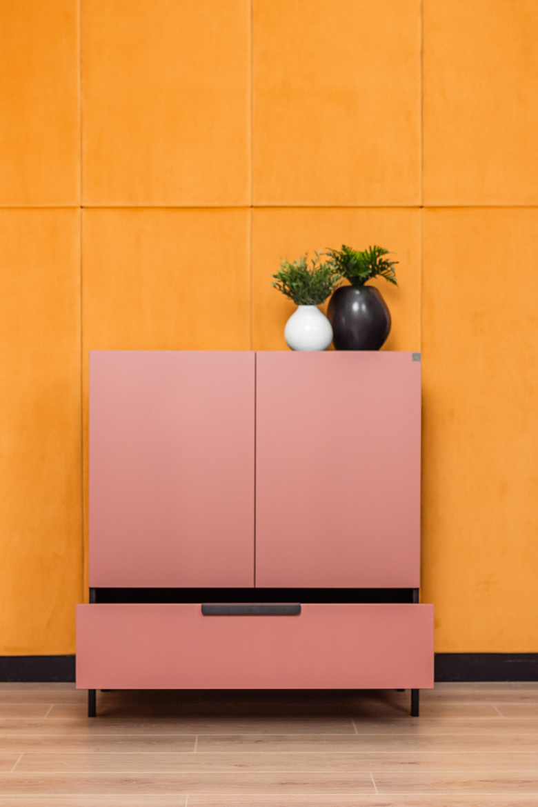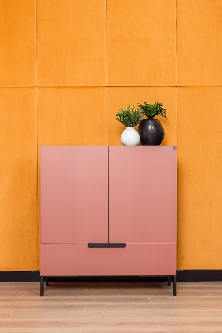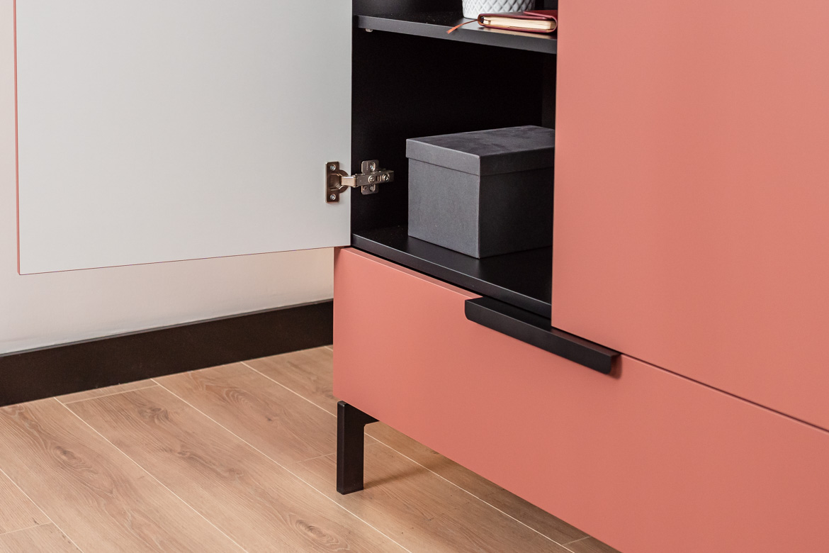 This chest of drawers is a practical solution that will bring not only elegance to your office, but also convenience in your daily work. A capacious drawer with a convenient handle will accommodate documents and accessories, so the most important things are always at hand. Behind the upper fronts are functional shelves – ideal for binders, office supplies or equipment, which gain their permanent place and do not take up space on the desk. A solid metal frame ensures durability and stability, while making the furniture look light and modern.