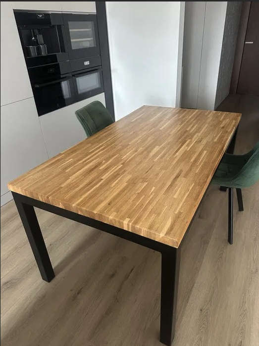Classics are always in fashion. This table will fit into any interior. An oak countertop protected with Osmo oil will perform well in all kitchen conditions.