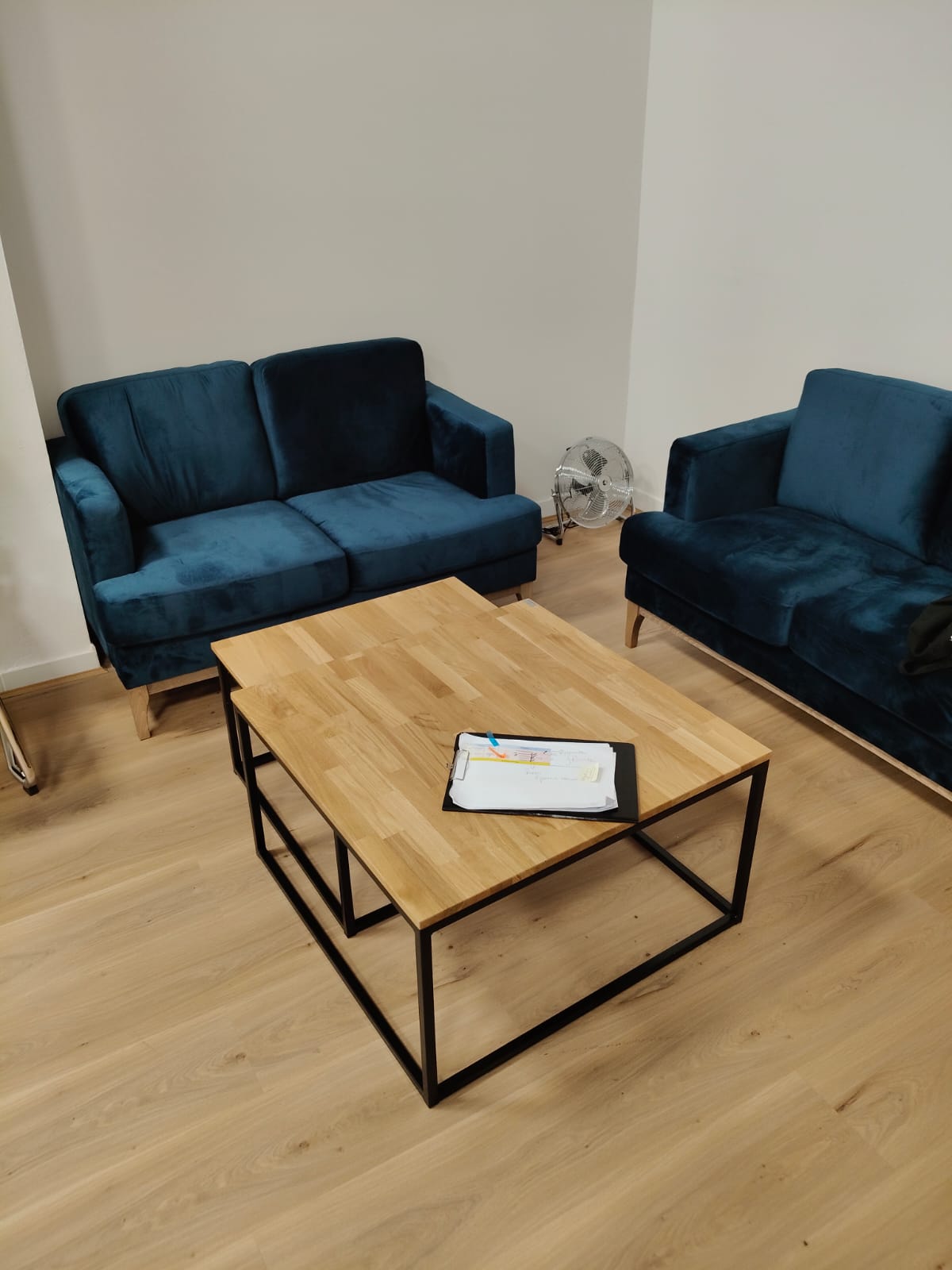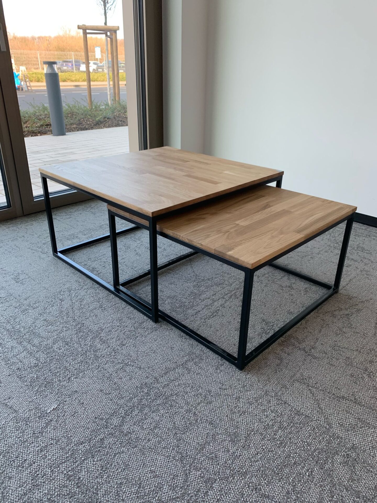 A really nice coffee table—simple, modern, and beautifully crafted. The set of two tables is super practical; you can arrange them however you like to suit your needs. The wooden tops look very elegant, and the metal frame is stable and sturdy. Perfect