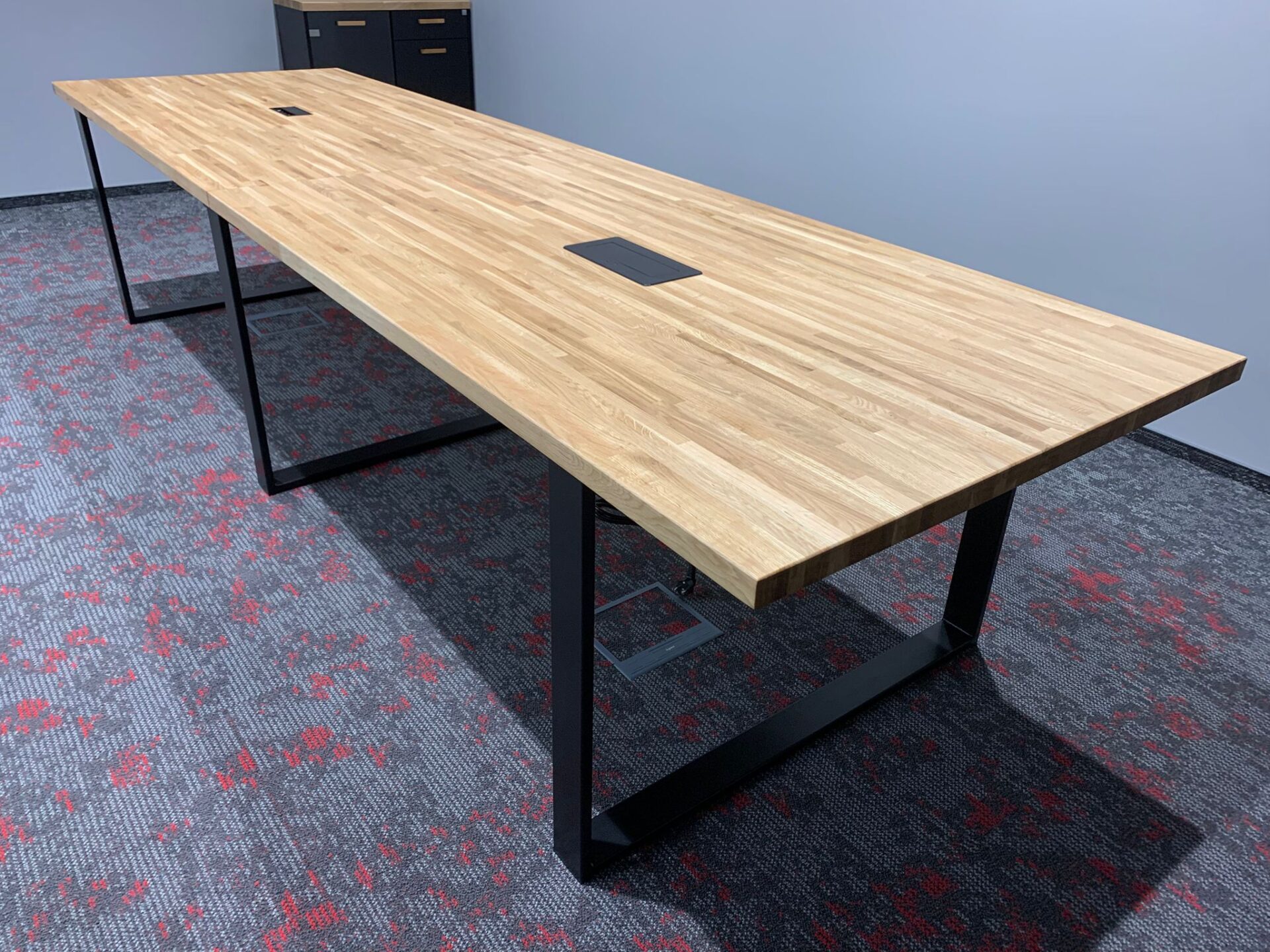Conference table 220×100 cm, with wooden top with cable hole