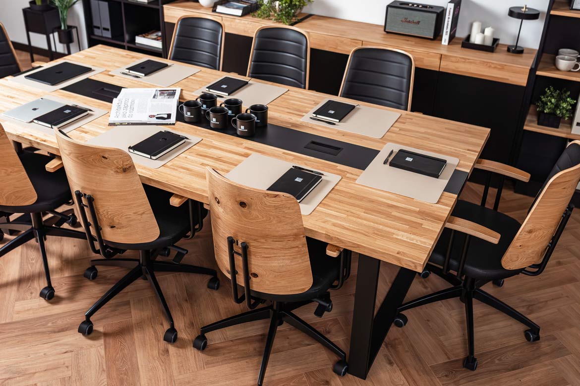 A great conference table—sturdy, elegant, and highly functional. The large tabletop ensures comfort even during larger meetings, and the cable management channels are a big plus when working with laptops. The high-quality craftsmanship and stable construction are impressive. Perfect for conference rooms and daily team meetings.