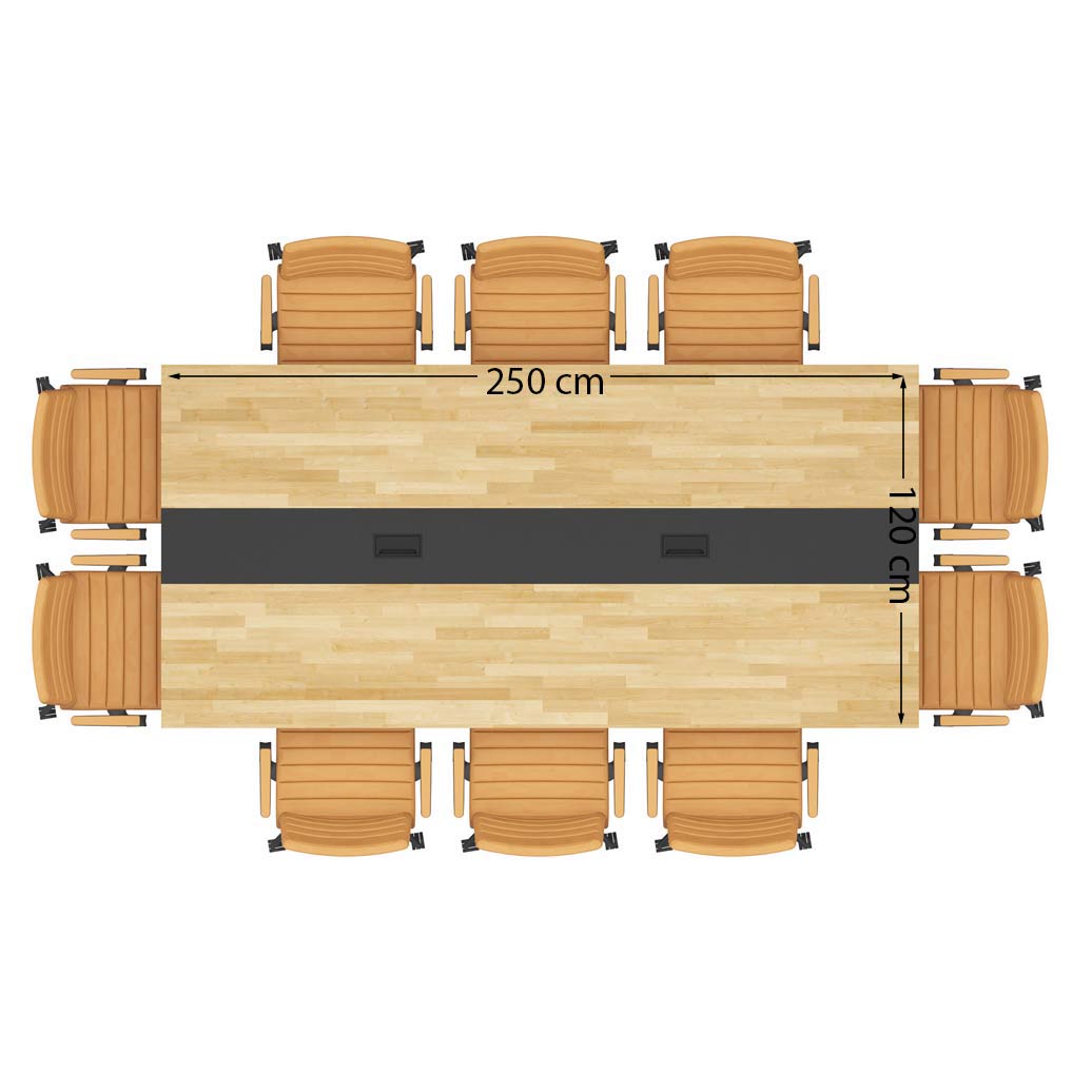 Conference table with wooden top 250x120cm with cable hole