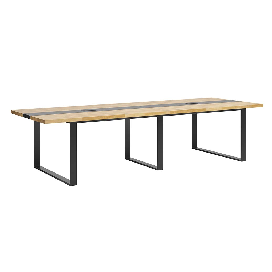 Measuring 320×110 cm, this modern conference table is ideal for offices, meeting rooms and coworking spaces. The natural wood top gives it a prestigious look, and the built-in cable hole makes it easy to organize your equipment. The stable metal base guarantees durability and comfort for everyday use.