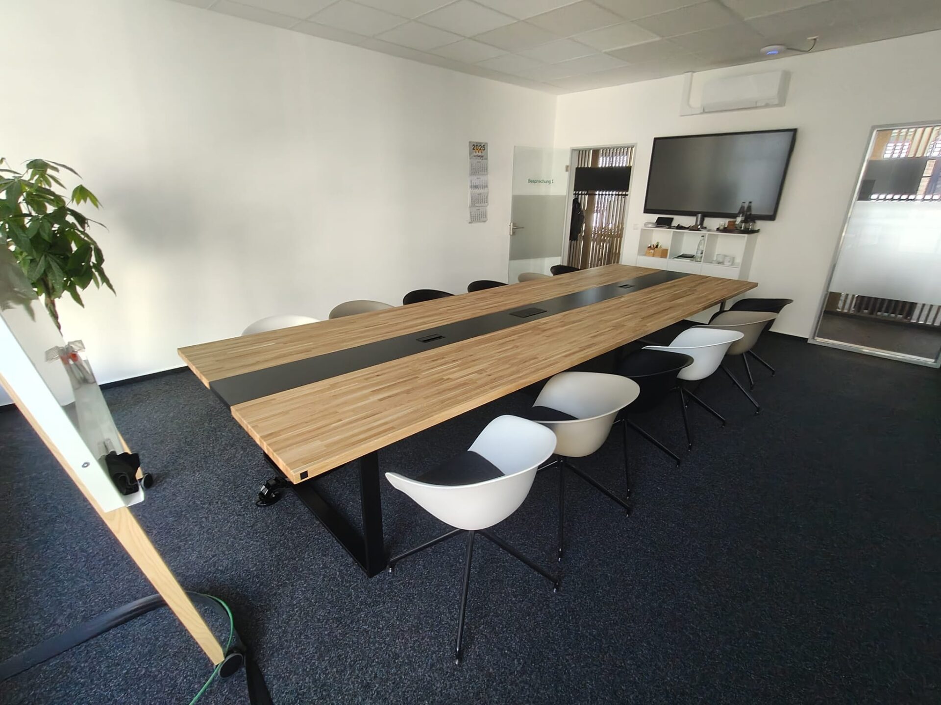 5. A great conference table—sturdy, elegant, and highly functional. The large tabletop ensures comfort even during larger meetings, and the cable management channels are a big plus when working with laptops. The high-quality craftsmanship and stable construction are impressive. Perfect for conference rooms and daily team meetings.