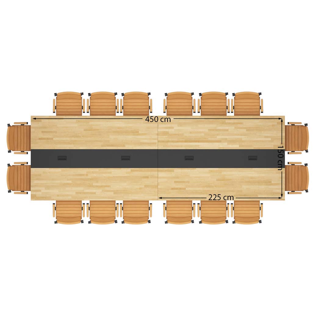 Conference table with wooden top 450x150cm with cable holes Conference table with wooden top 450x150cm with cable holes