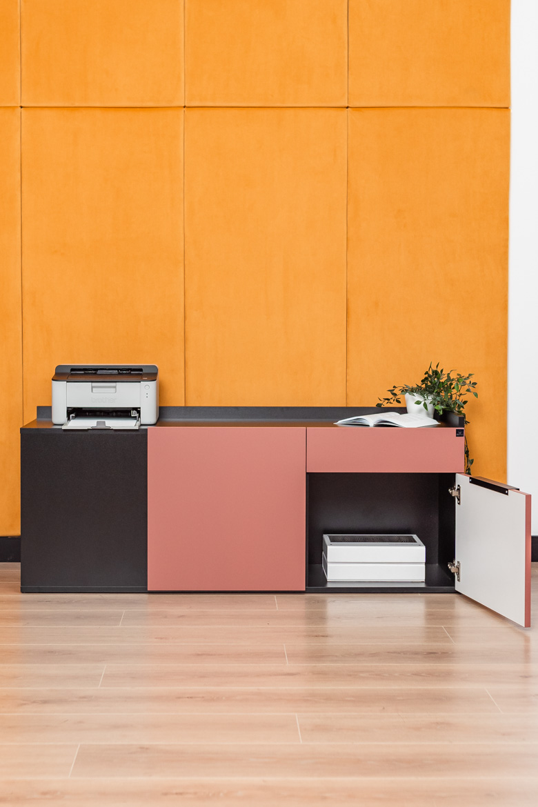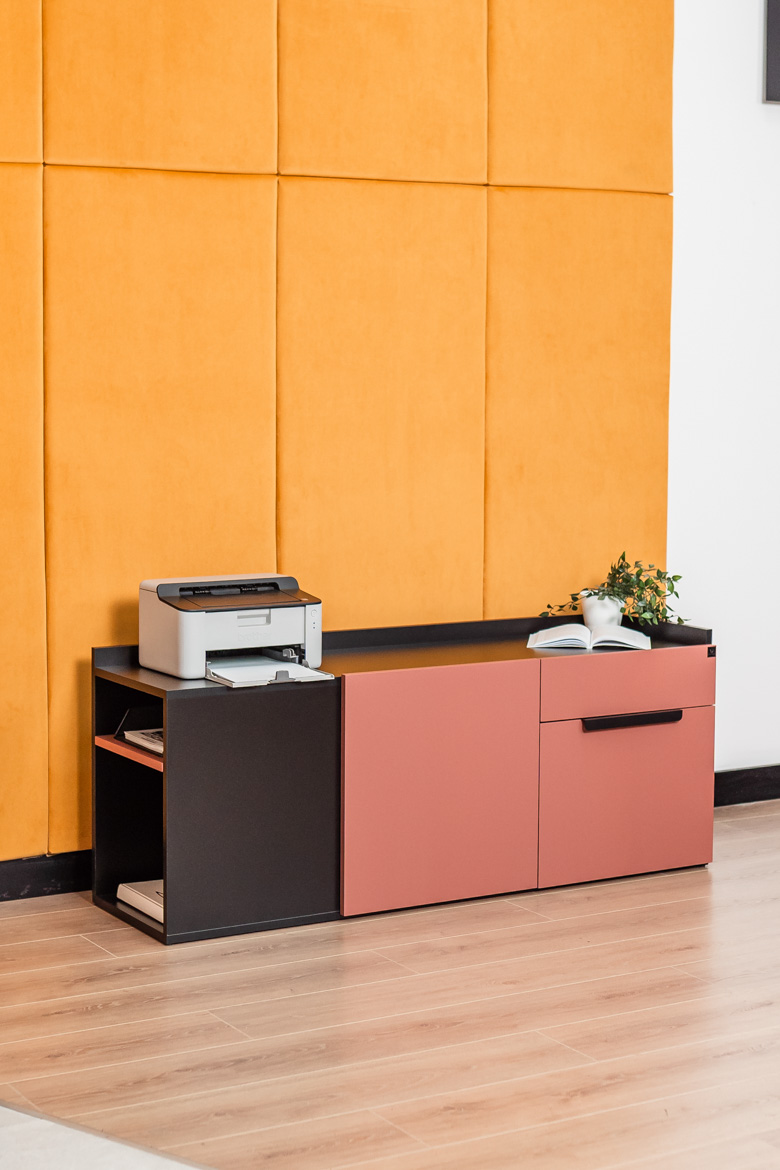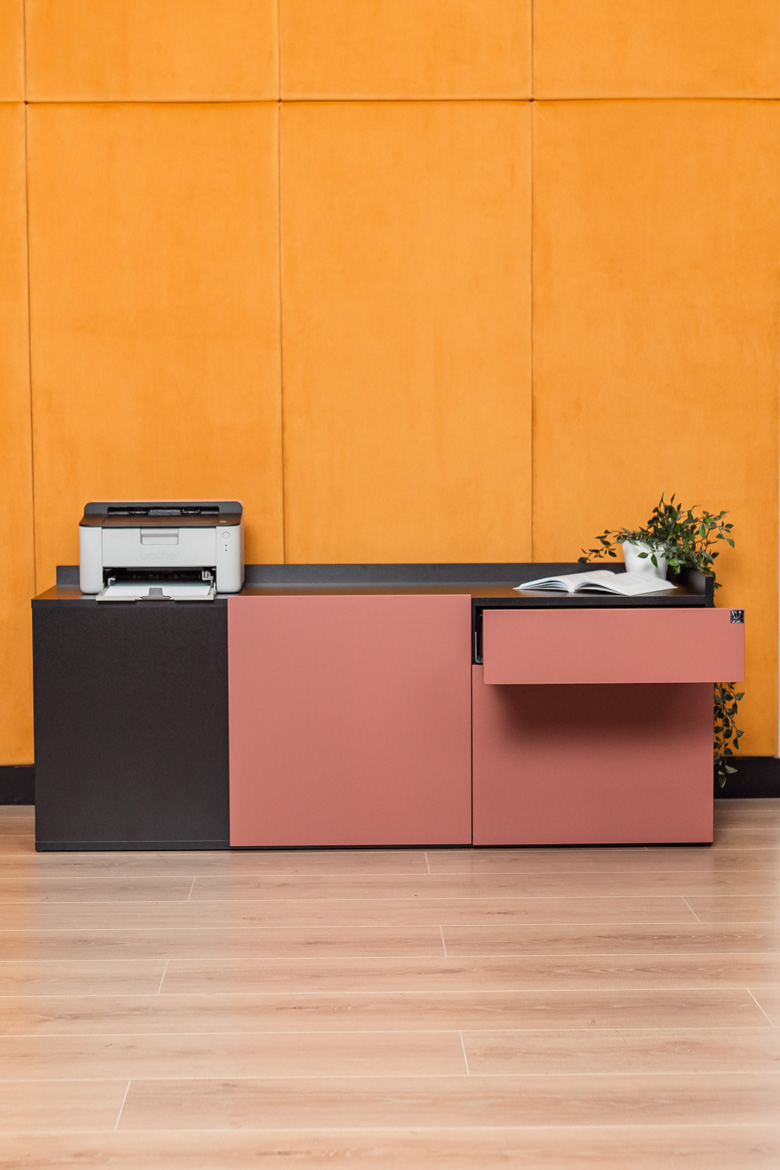 Every day at the office begins at the desk – this is where ideas are born, decisions are made and future projects are planned. The corner desk from the Corporate collection is designed to support a modern work rhythm. The brick-colored top catches the eye with its elegant finish, while the solid black construction adds confidence and stability.