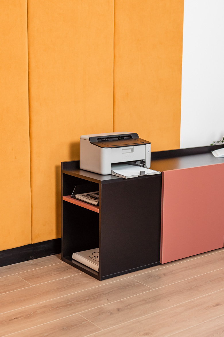 The corner form of the desk allows you to maximize the use of your office space, offering convenience for both individual and collaborative work. It is an excellent choice for an office, open space or project room.