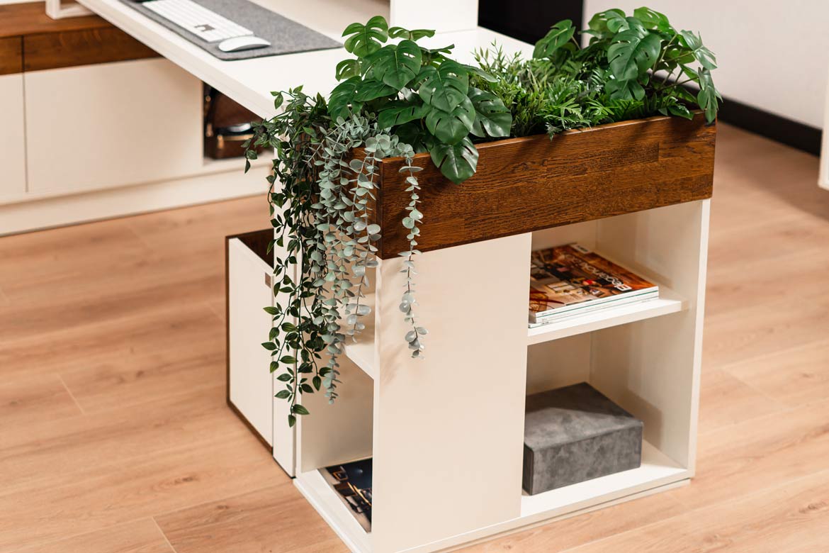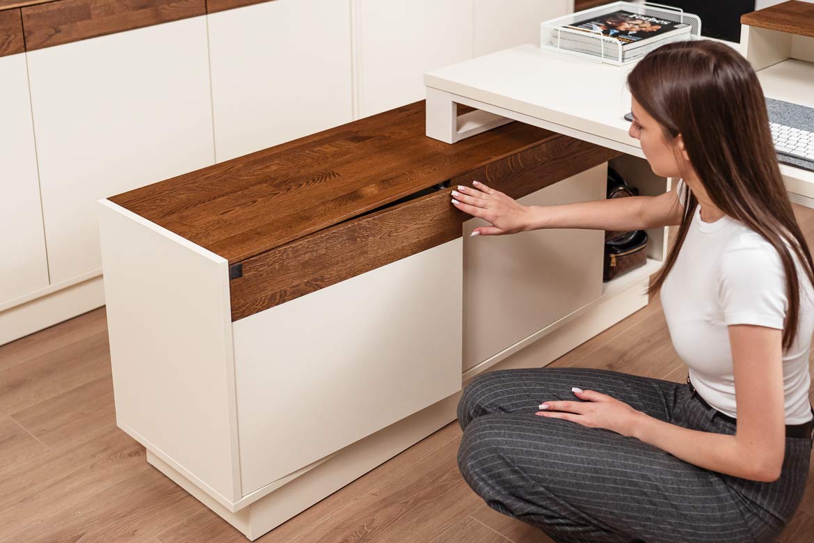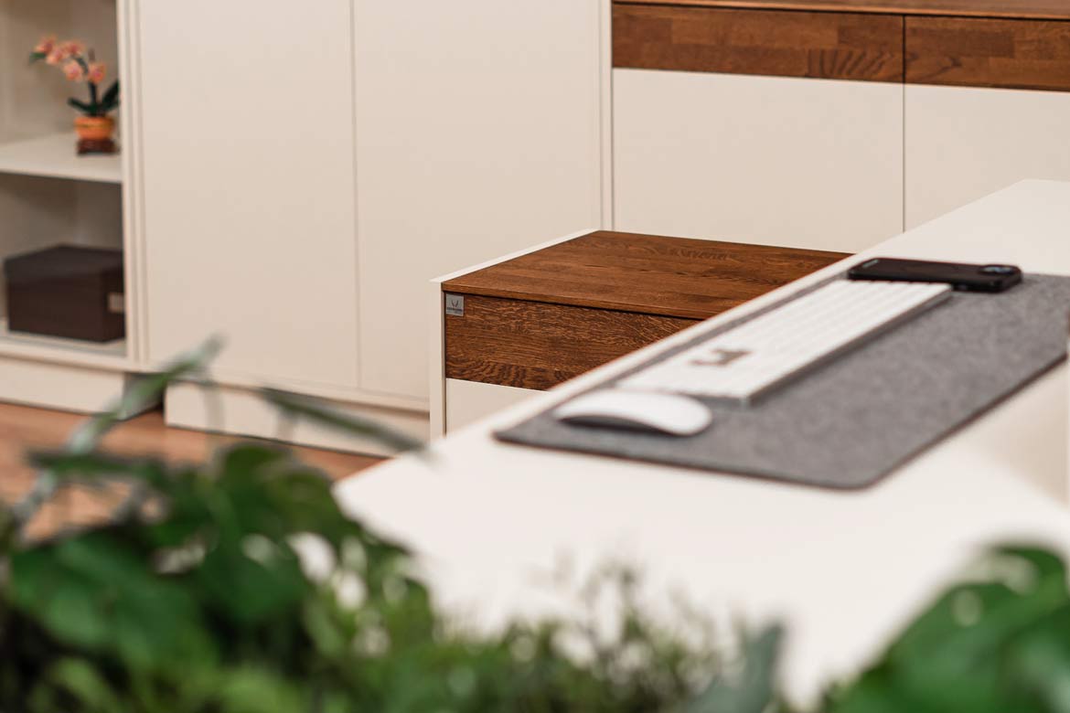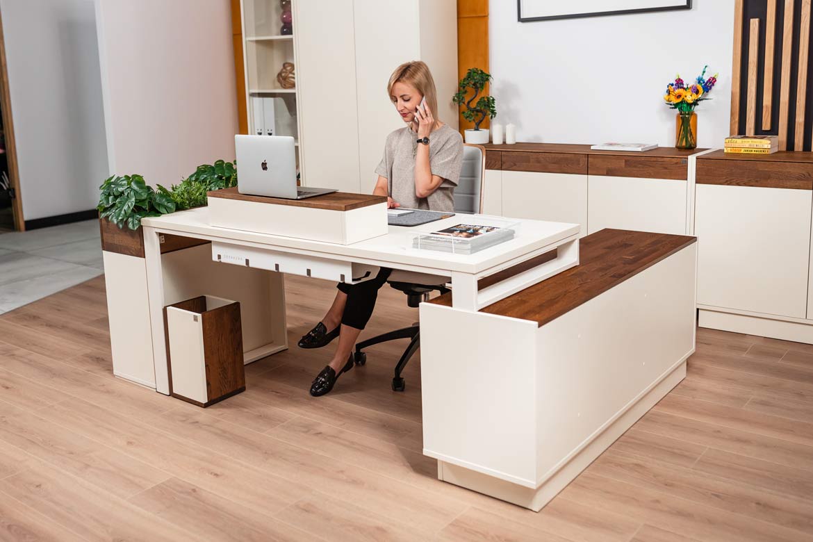 The contrast of light and darker tones emphasizes the elegance of the furniture, and the careful finishing makes the desk the focal point of the office. This is an option for those who appreciate sophisticated style and unique design, which will add class and lightness to the interior.