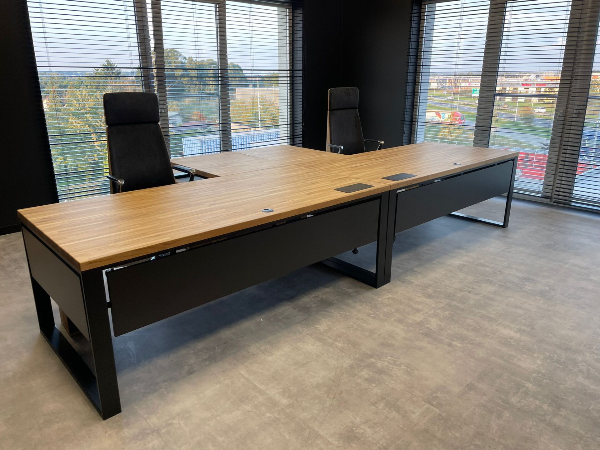 Two corner desks joined together to form one large workstation is a fantastic solution. There’s plenty of workspace, everything is well-organized, and it’s very comfortable for everyday use. The whole setup looks modern and sturdy 👍
