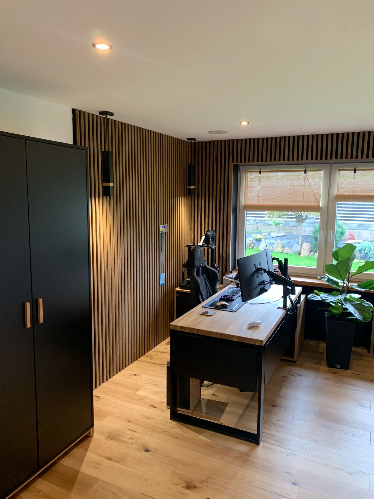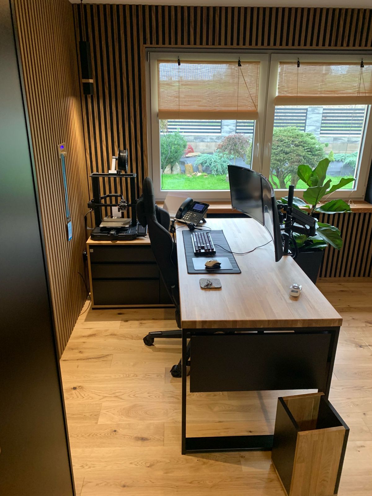 A very comfortable corner desk—plenty of workspace and everything within easy reach. The wooden top looks great and is really sturdy, and the whole desk stands firmly and makes a good impression. Perfect for everyday work, but it also works well for meetings or conversations with clients. I’m really impressed with the build quality.