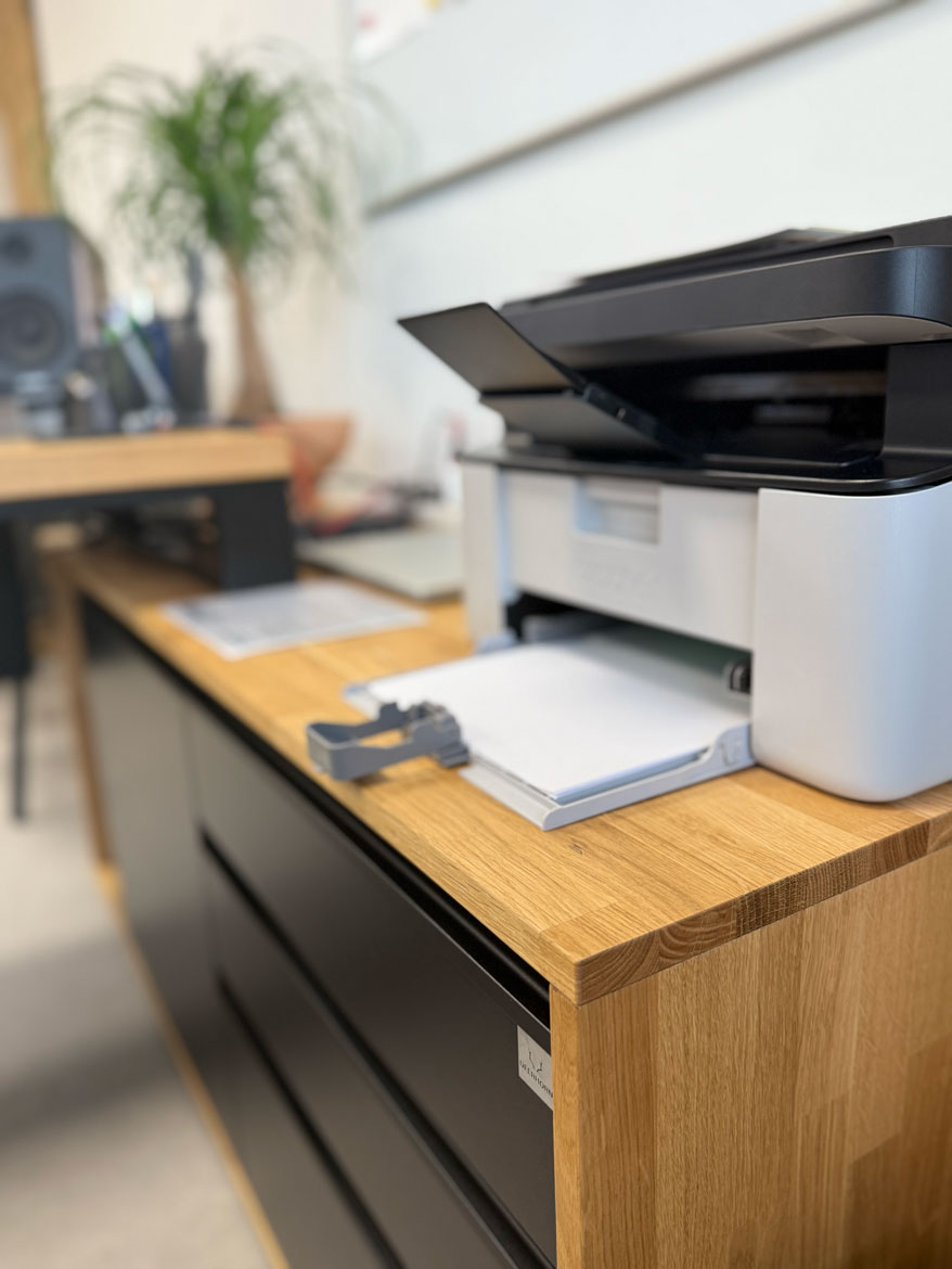 A desk with a large storage unit is a real winner. It’s super comfortable, you can store everything away, and the desktop finally stays tidy. It’s sturdy, stable, and looks great in the office. You can tell it’s high-quality from day one.
