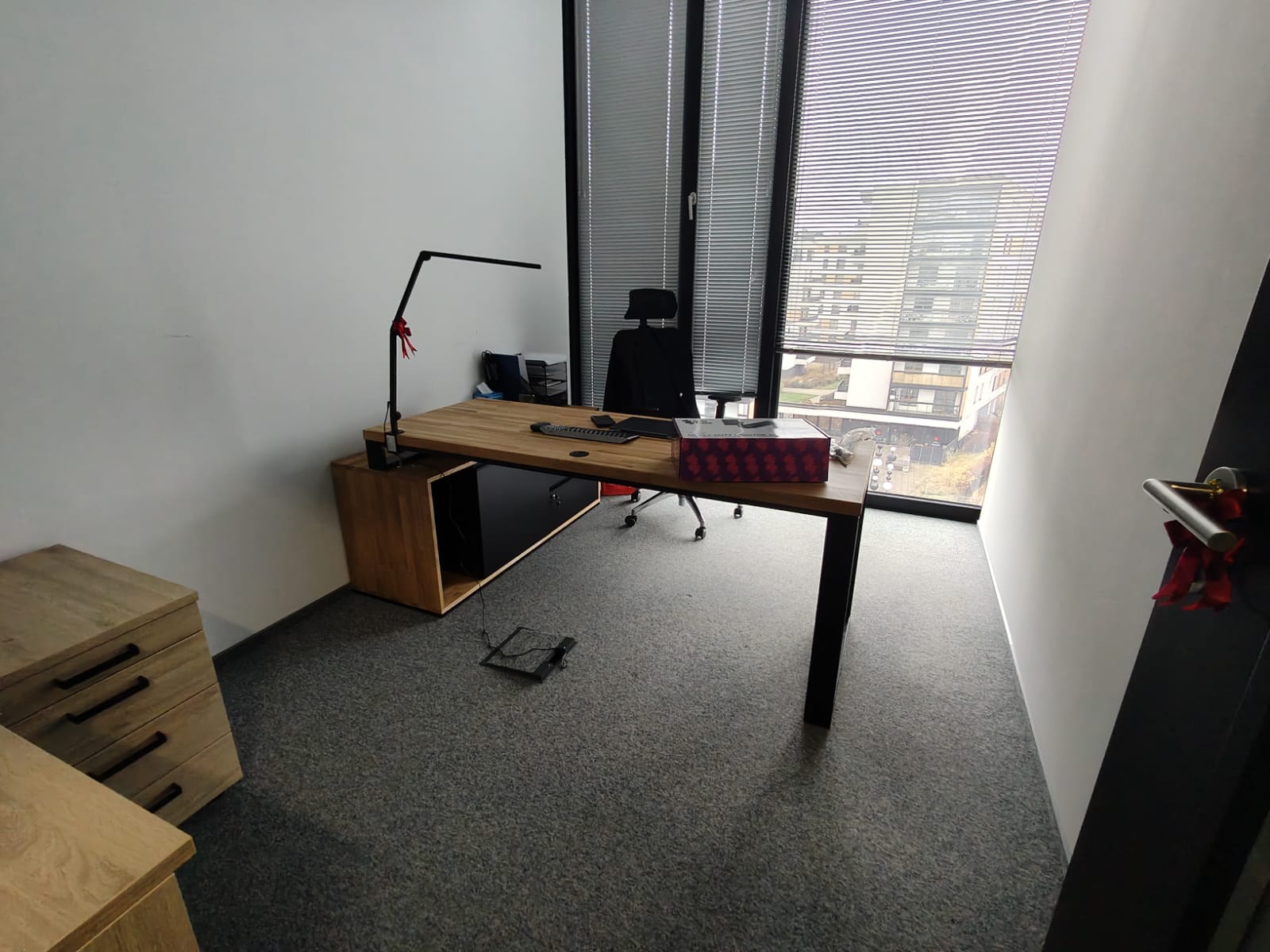 Biurko narożne świetnie wpisało się w biuro, uspokoiło przestrzeń i sprawiło, że stanowisko pracy wygląda profesjonalnie i po prostu ma sens