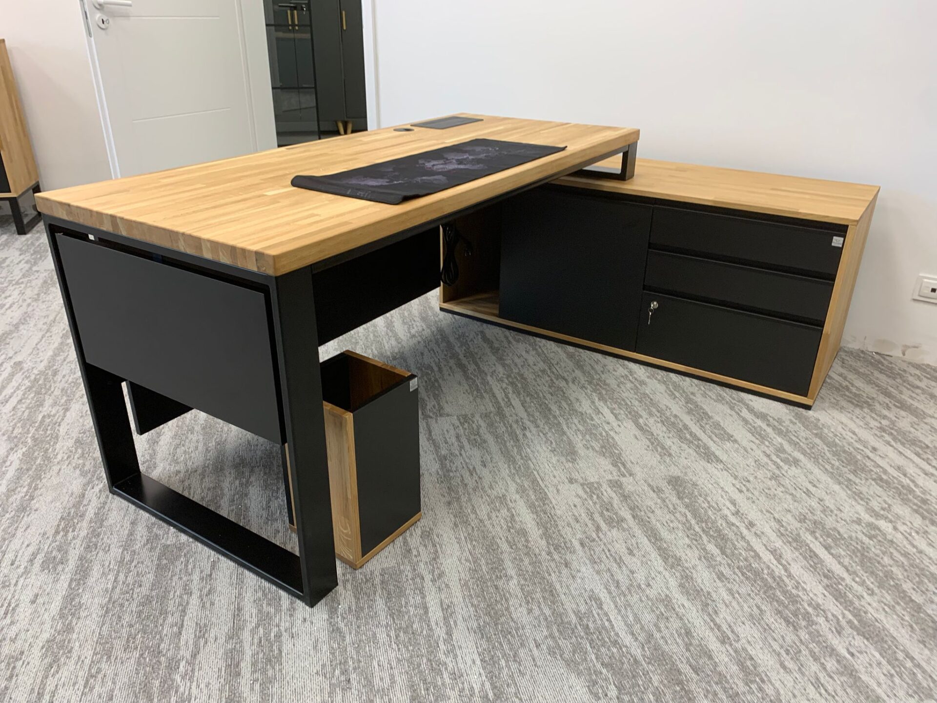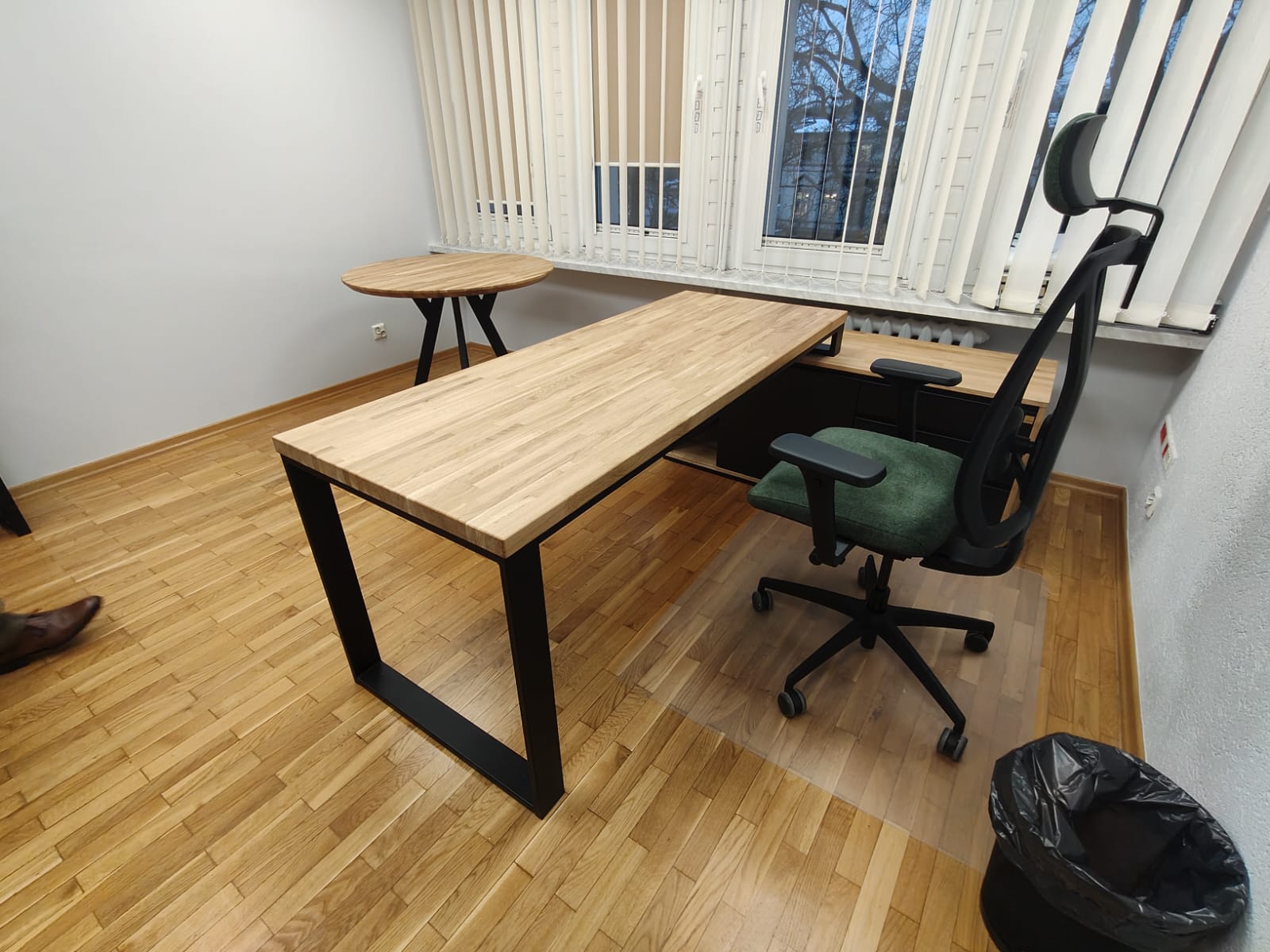 The modern desk for the office was also equipped by us with elegant masking blanks, which, in addition to the decorative function, are also a functional solution to ensure safety and comfort when using the desk.