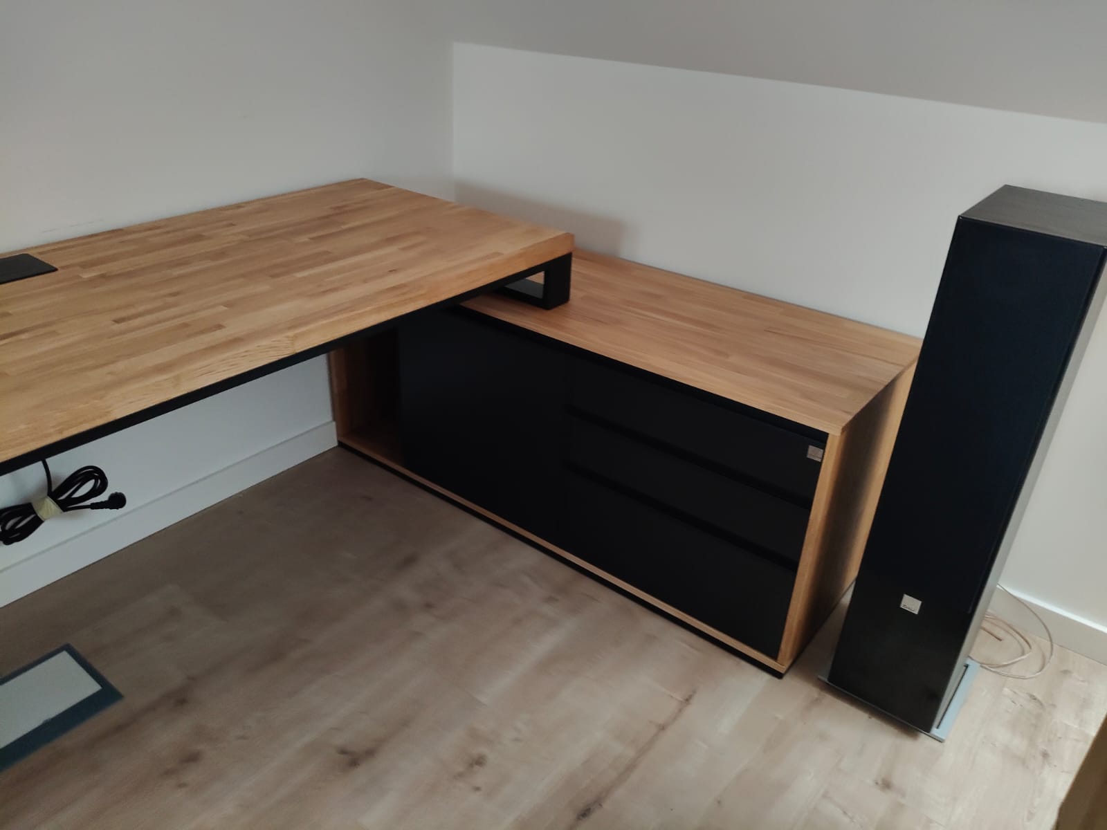 A very comfortable corner desk—plenty of workspace and everything within easy reach. The wooden top looks great and is really sturdy, and the whole desk stands firmly and makes a good impression. Perfect for everyday work, but it also works well for meetings or conversations with clients. I’m really impressed with the build quality.