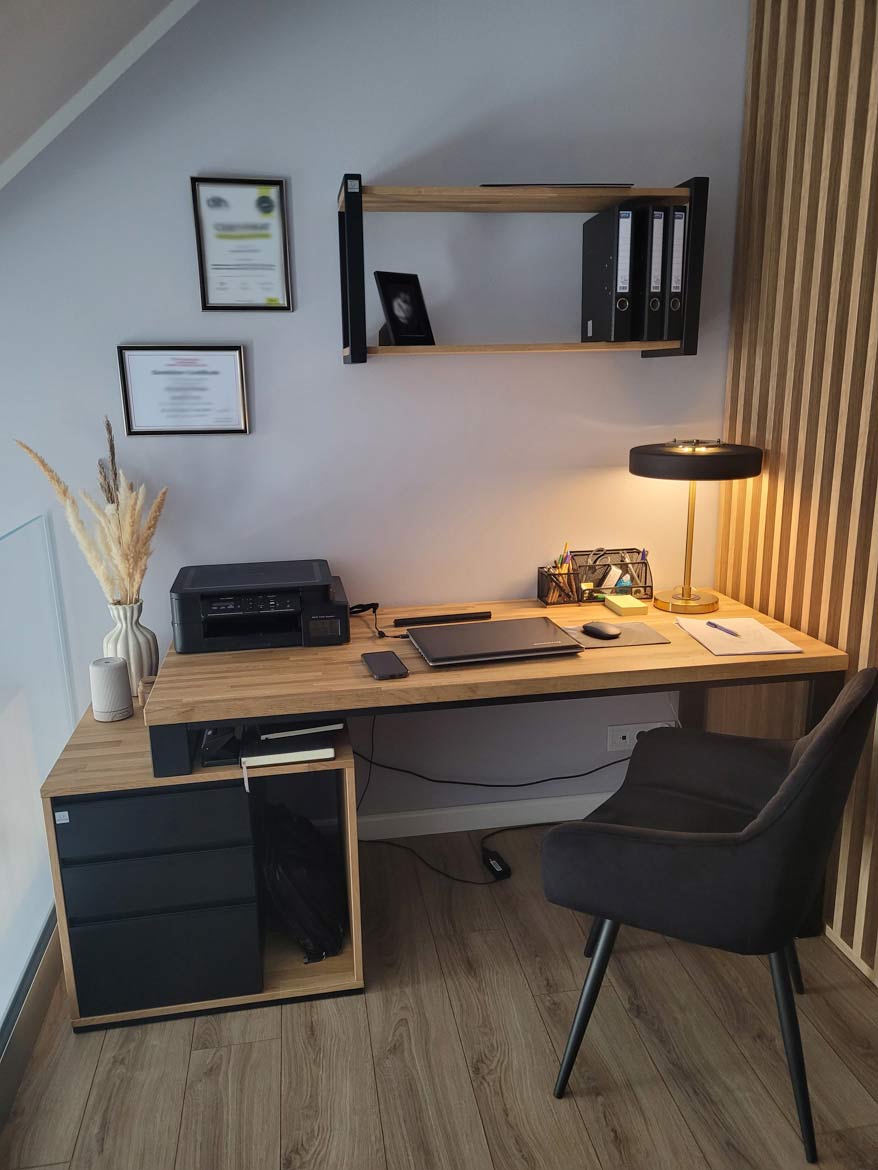 This desk keeps my entire workday organized. Everything has its place, nothing gets in the way, and the space helps me stay focused. It’s sturdy, beautifully finished, and very comfortable to use every day. Since I’ve had it, my work has simply been going more smoothly.