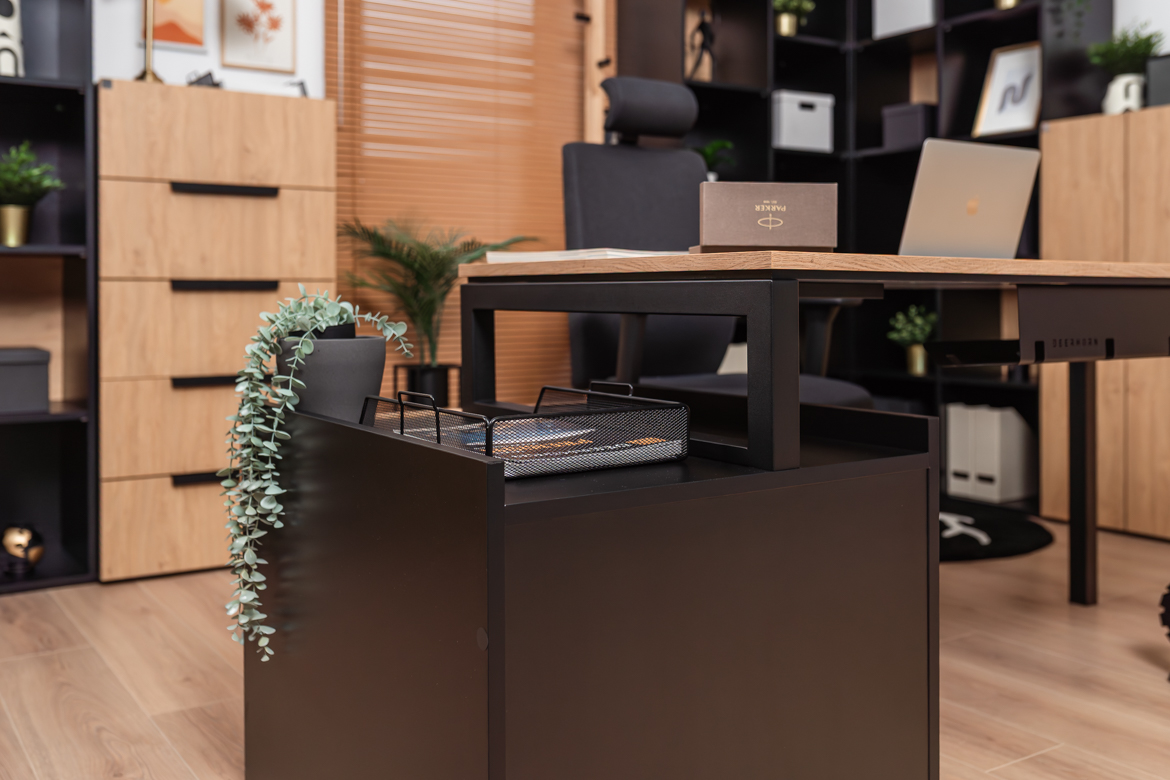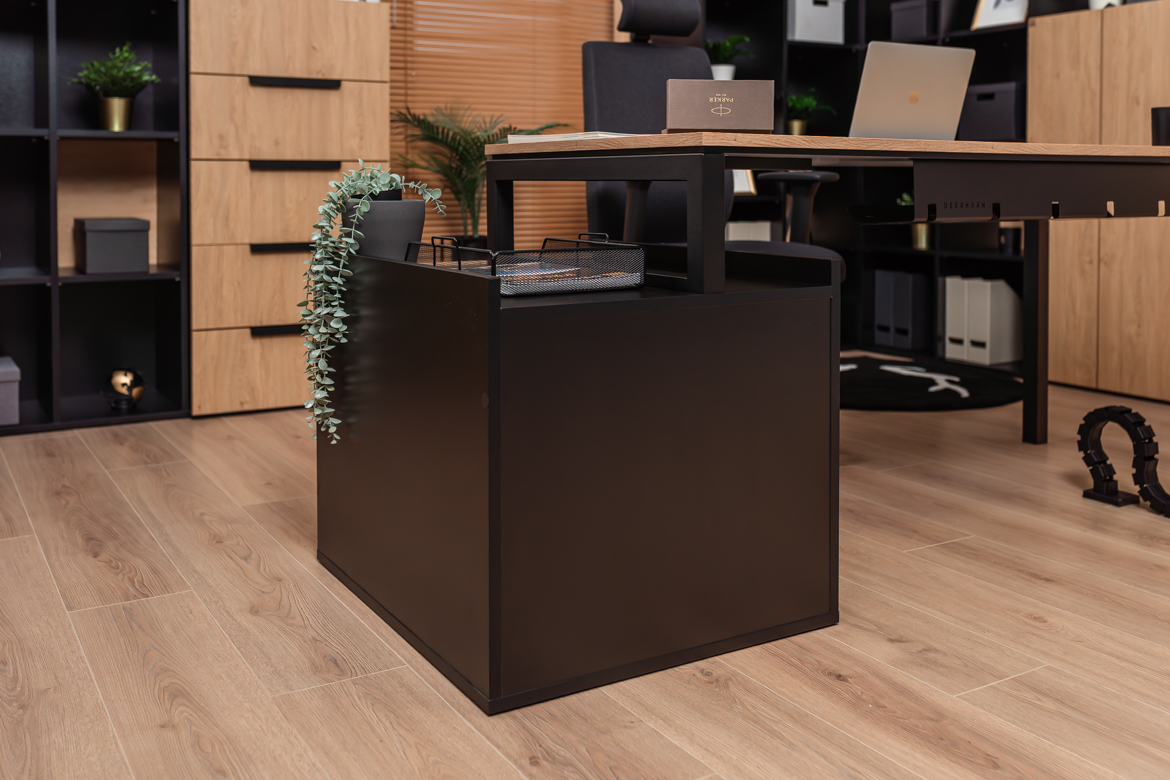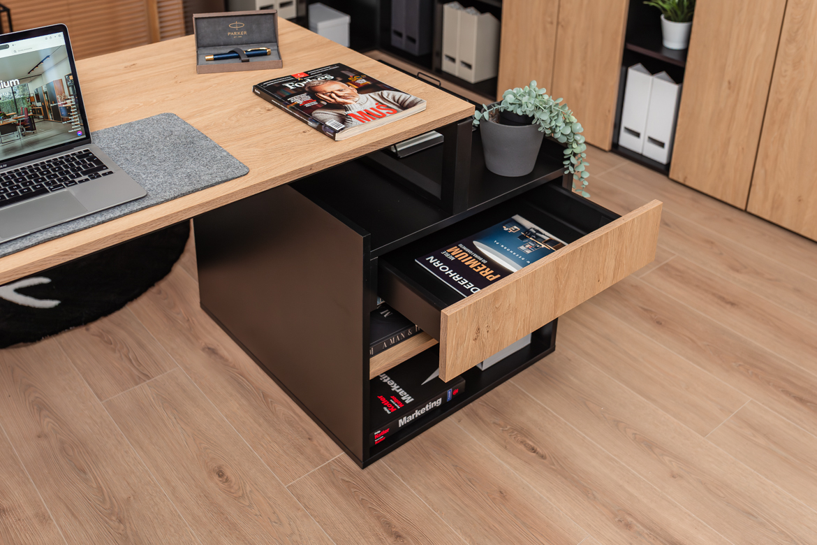 The versatile form of the desk allows you to make maximum use of the available space, making it ideal for both smaller rooms and larger offices that require proper organization of the workstation.