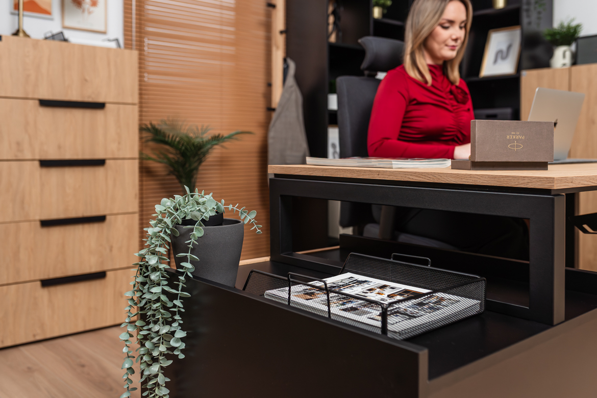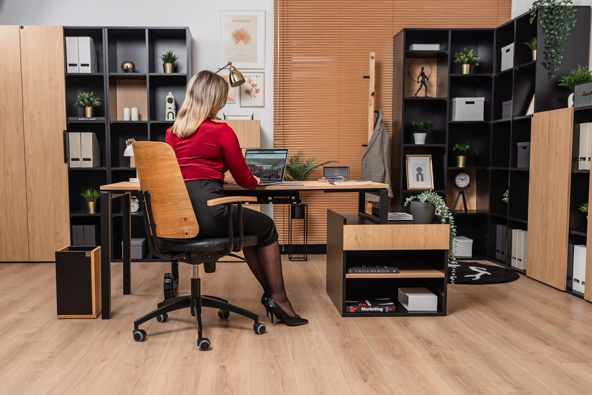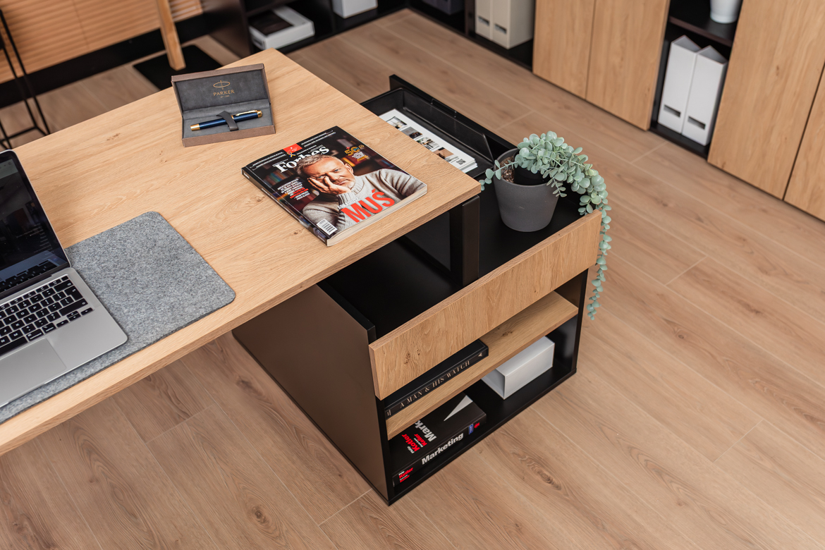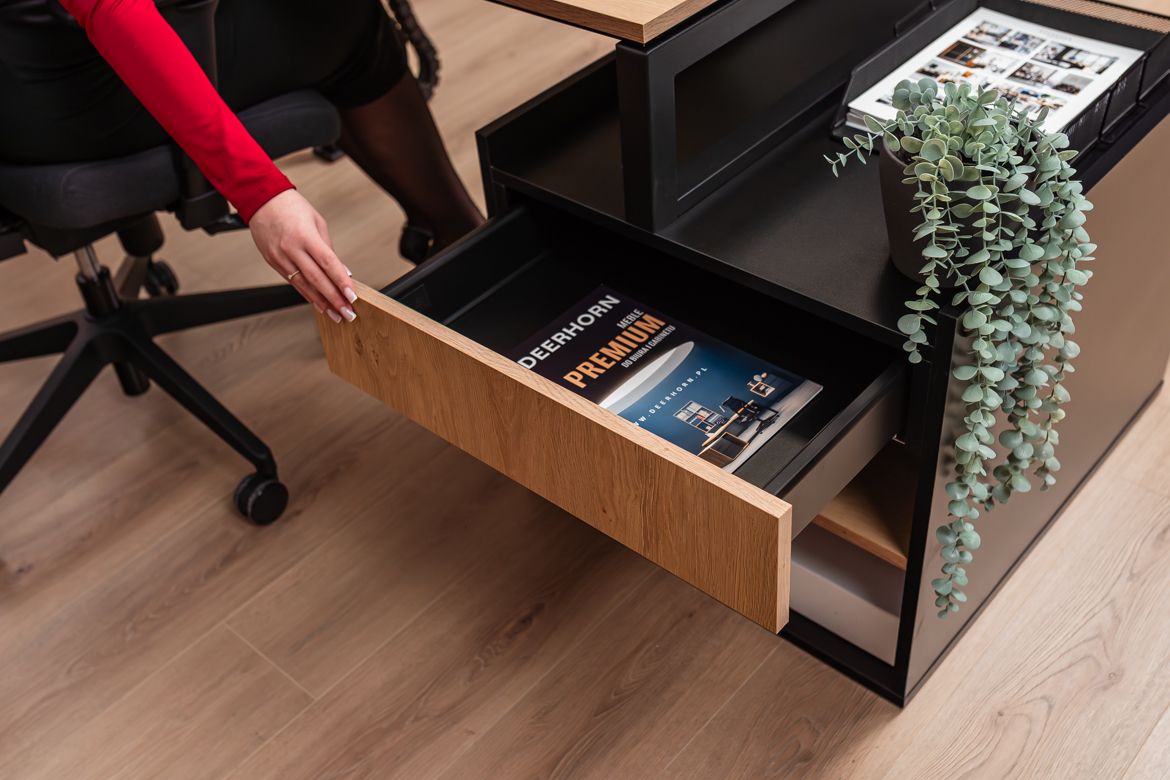 The versatile form of the desk allows you to make maximum use of the available space, making it ideal for both smaller rooms and larger offices that require proper organization of the workstation.