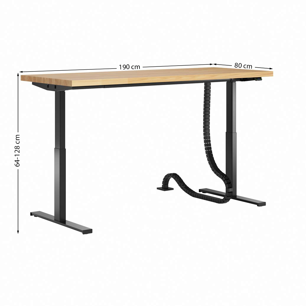 Desk with height adjustment and wooden top 190x80cm