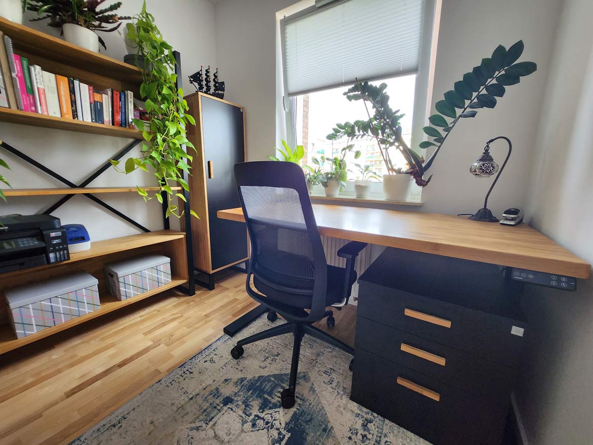 Biurko z regulacją wysokości to bardzo trafiony wybór. Mechanizm działa płynnie i cicho, a możliwość dopasowania wysokości znacząco podnosi komfort pracy. Mebel jest stabilny, solidnie wykonany i estetyczny. Cały proces zamówienia przebiegł sprawnie, dostawa była terminowa, a biurko dotarło doskonale zabezpieczone. Z pełnym przekonaniem polecam.