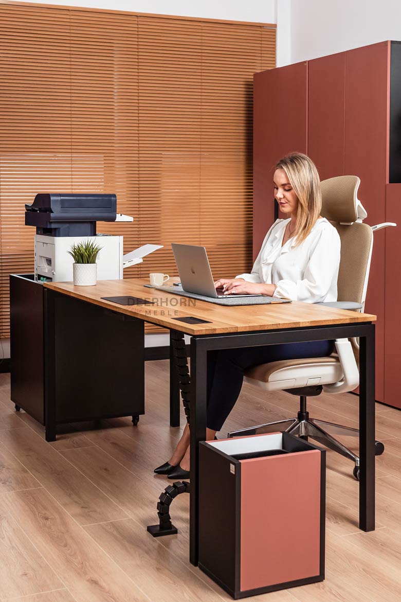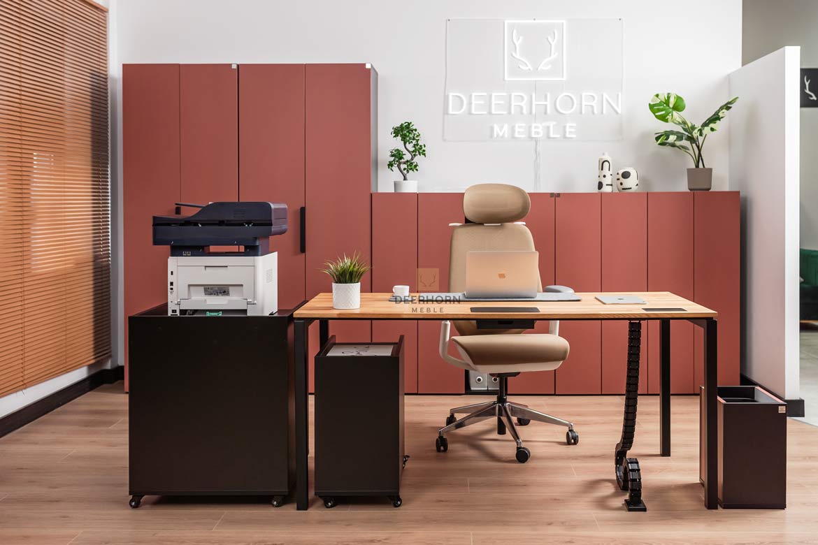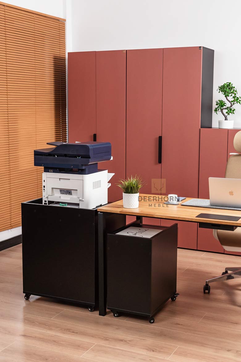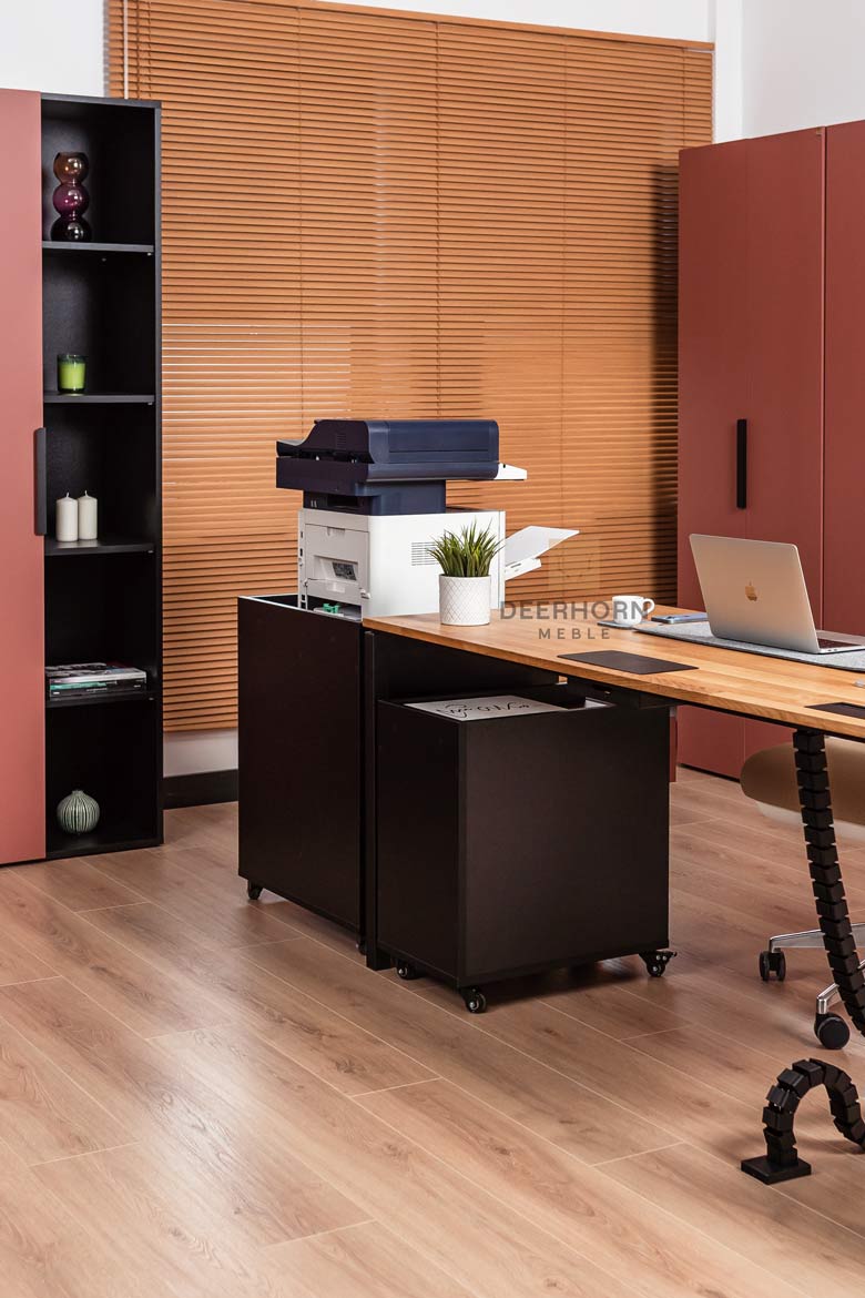 Modern and functional desk that facilitates daily work in the office and at home. The biggest advantage of this model is the mobile cabinet on wheels, which acts as an additional space for the printer, documents and office accessories. This gives you an orderly workspace, and all the most necessary things are always at hand.