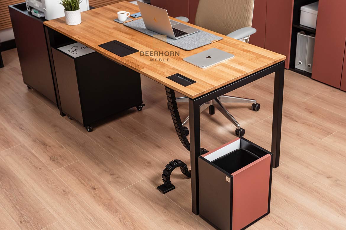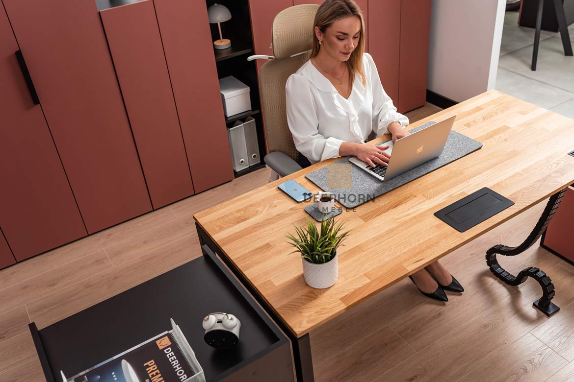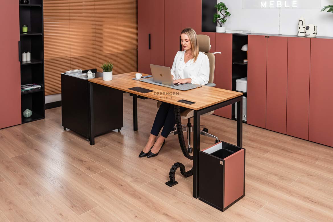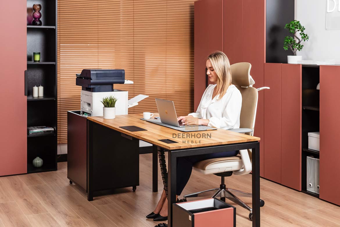 Modern and functional desk that facilitates daily work in the office and at home. The biggest advantage of this model is the mobile cabinet on wheels, which acts as an additional space for the printer, documents and office accessories. This gives you an orderly workspace, and all the most necessary things are always at hand.
