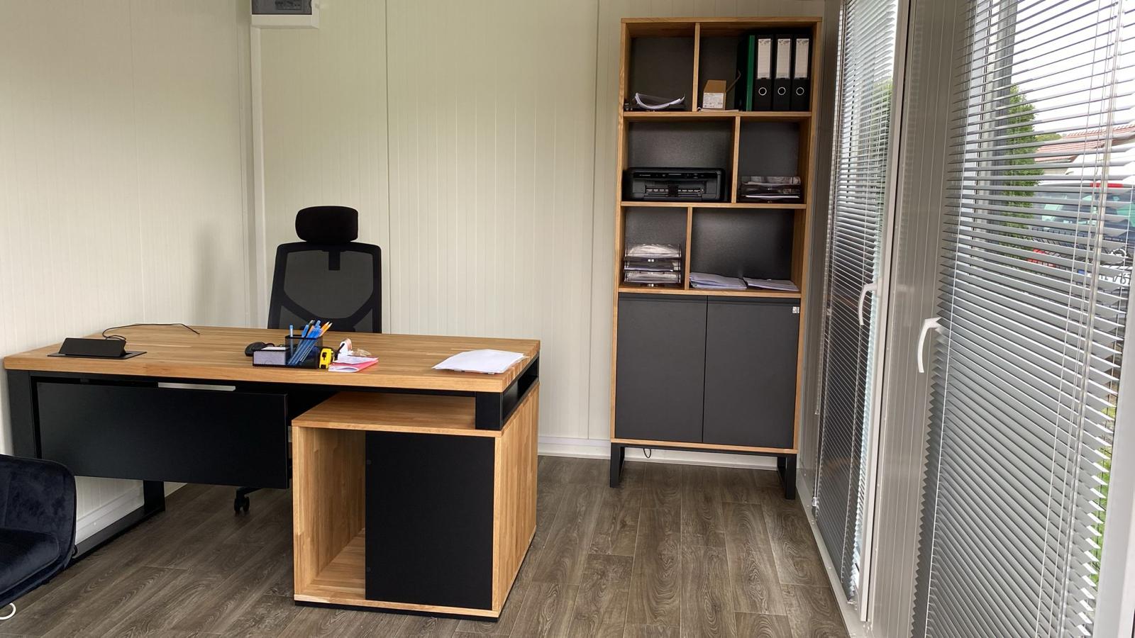 A desk with a storage unit is a very convenient solution for everyday work. All your documents and small items are within easy reach, and the desk surface stays tidy. The structure is sturdy, and the whole thing looks neat and professional. It works great