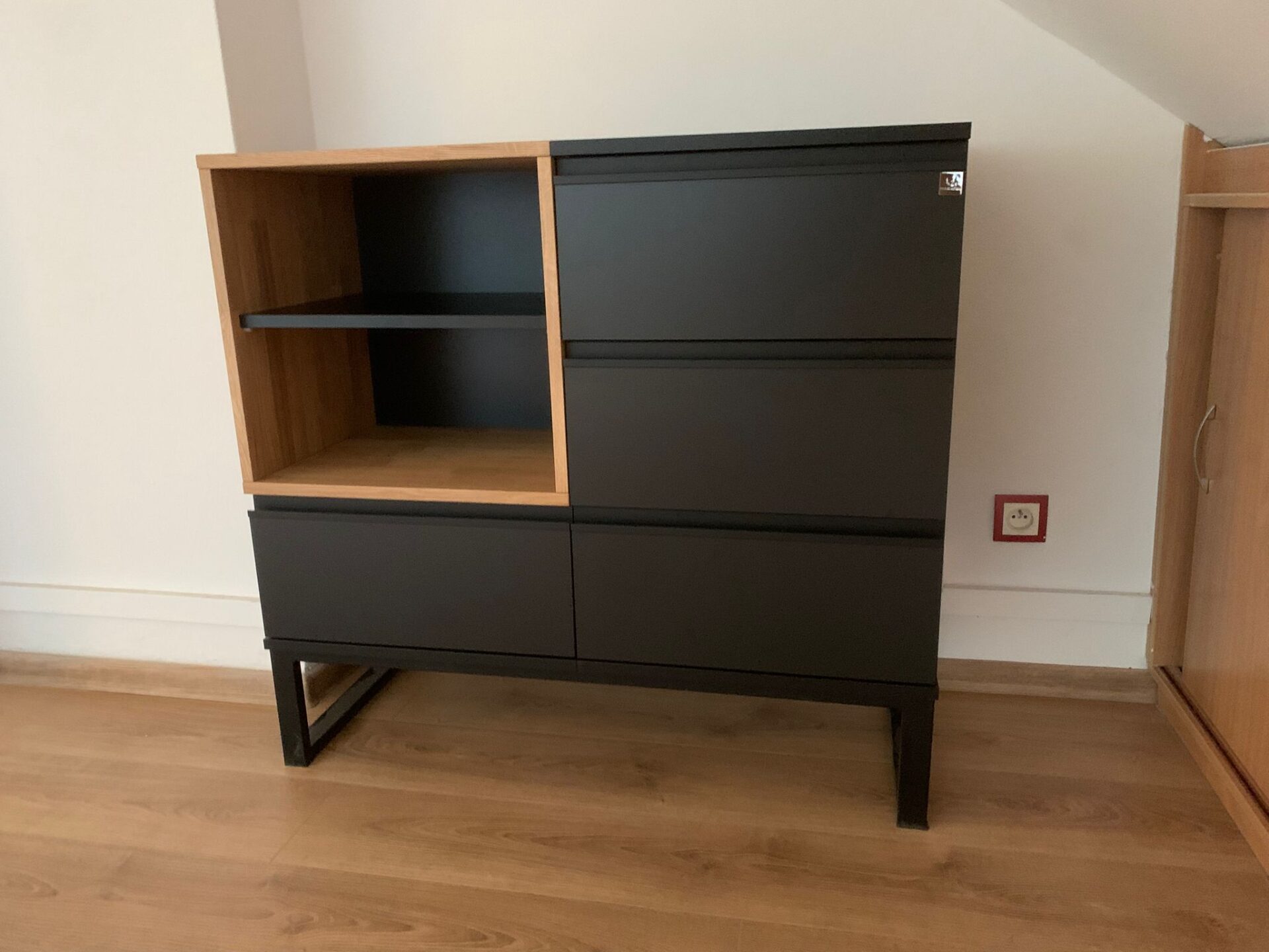 This is our original design, which is distinguished by its design, quality and functionality. Four drawers with a quiet self-closing mechanism will accommodate many items, and an open shelf will come in handy for things you always want to have in sight and at hand.